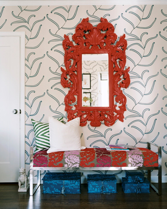 Brilhantes ornamentos contrastantes, motivos florais ou étnicos na decoração irão atender os proprietários de apartamentos espaçosos. Tais papel de parede sugerir uma decoração moderada do quarto com espelhos ou pinturas.