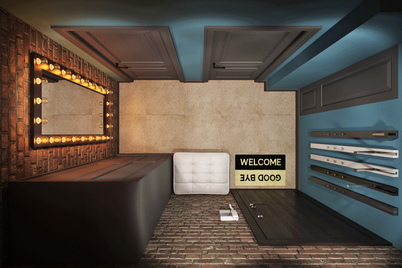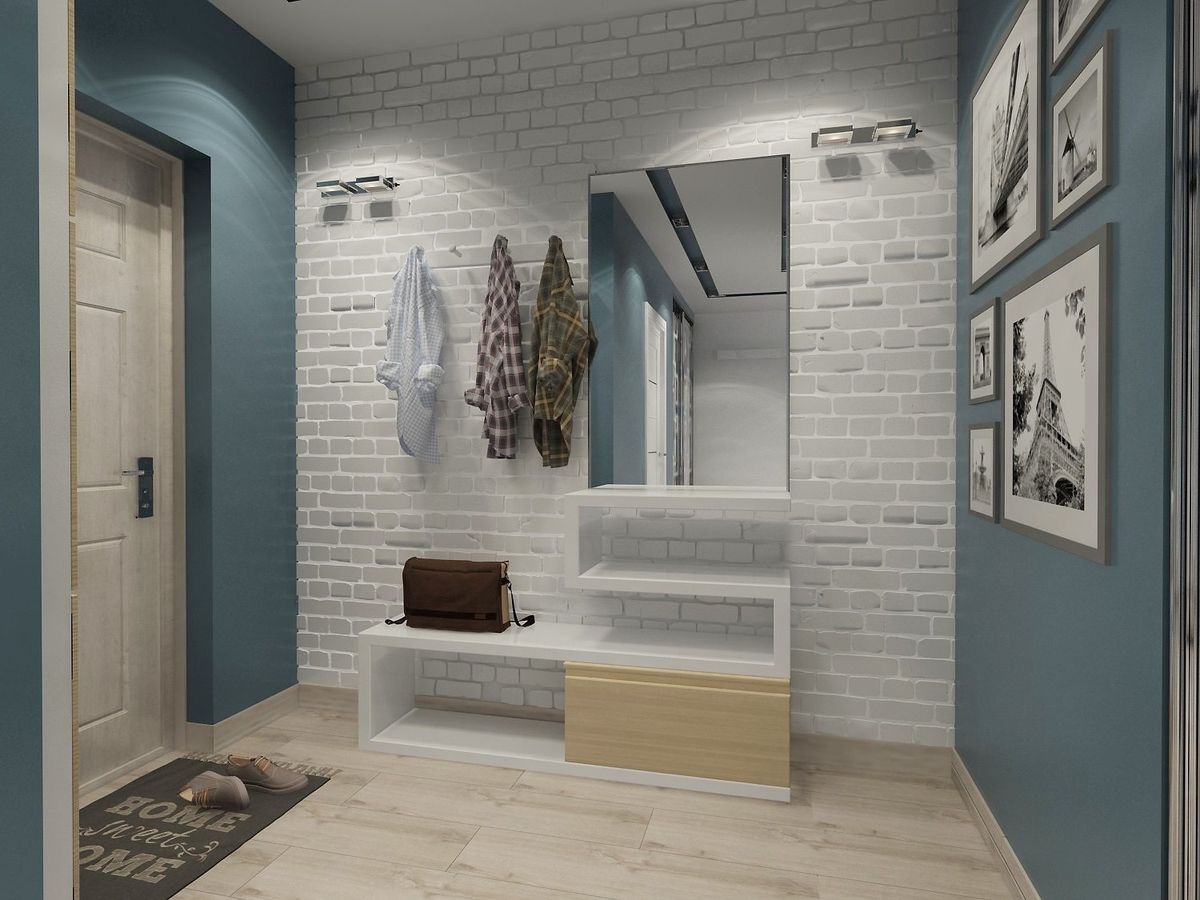 A maneira atual, barata e durável de dar ao hall um toque de estilo loft tem várias desvantagens. O desempenho da imitação de alta qualidade de uma parede de tijolos requer materiais especiais e conhecimento, tal acabamento sem uma abundância de têxteis parece rude, requer limpeza regular.