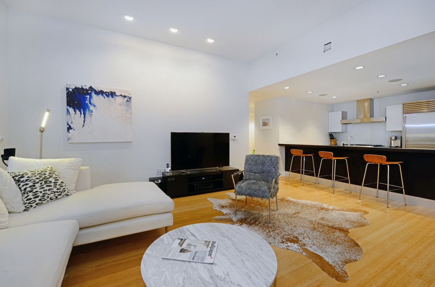 As principais características da sala de estar no estilo do minimalismo incluem o seguinte: