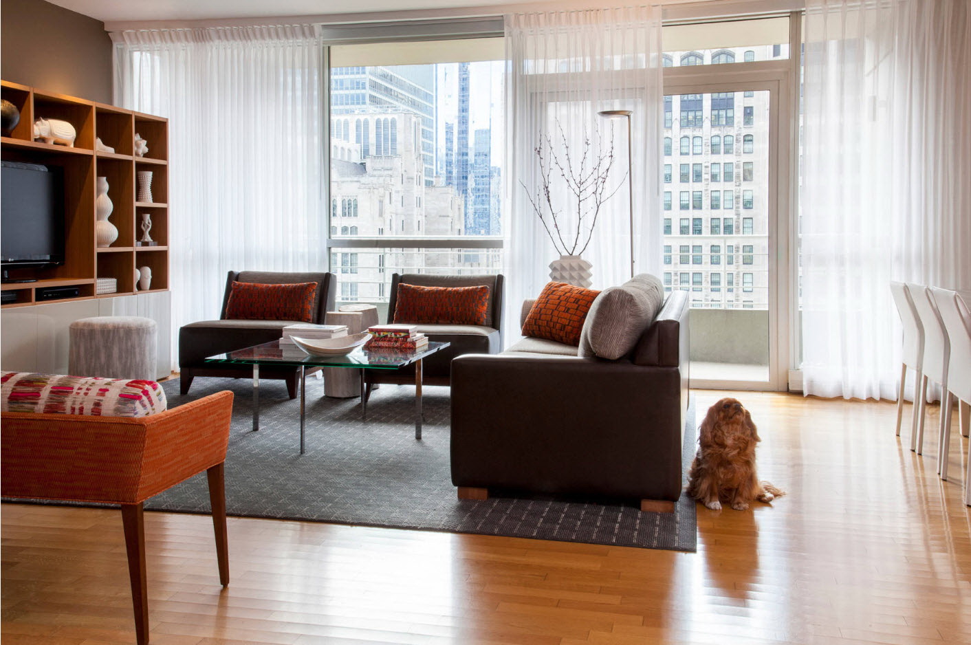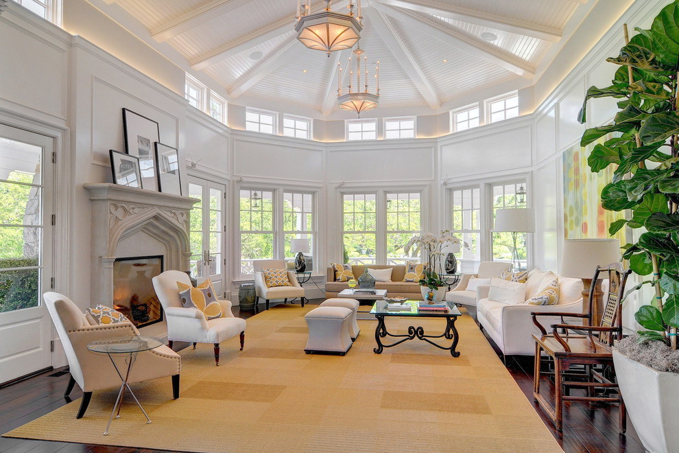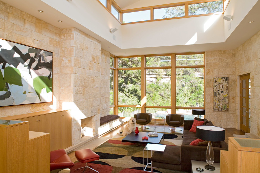 O Windows deve ser o maior possível, pois o foco principal é a luz natural. E quando as janelas estão fechadas com cortinas pesadas, fontes de iluminação artificial vêm para o resgate.