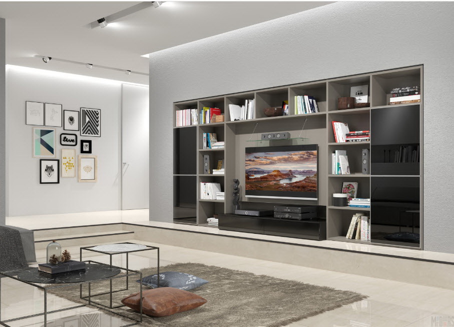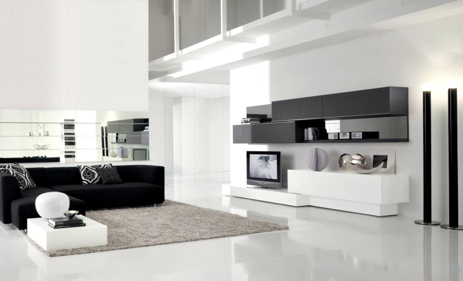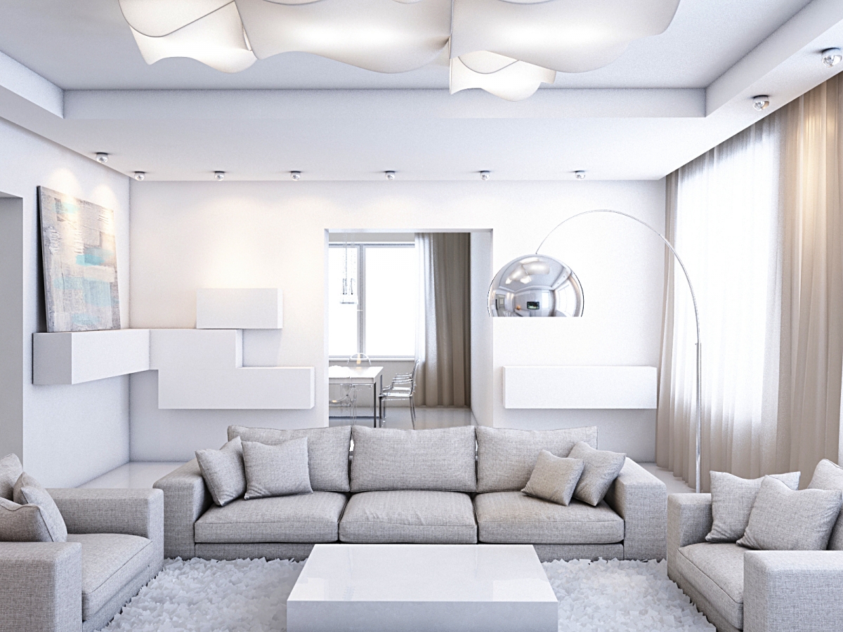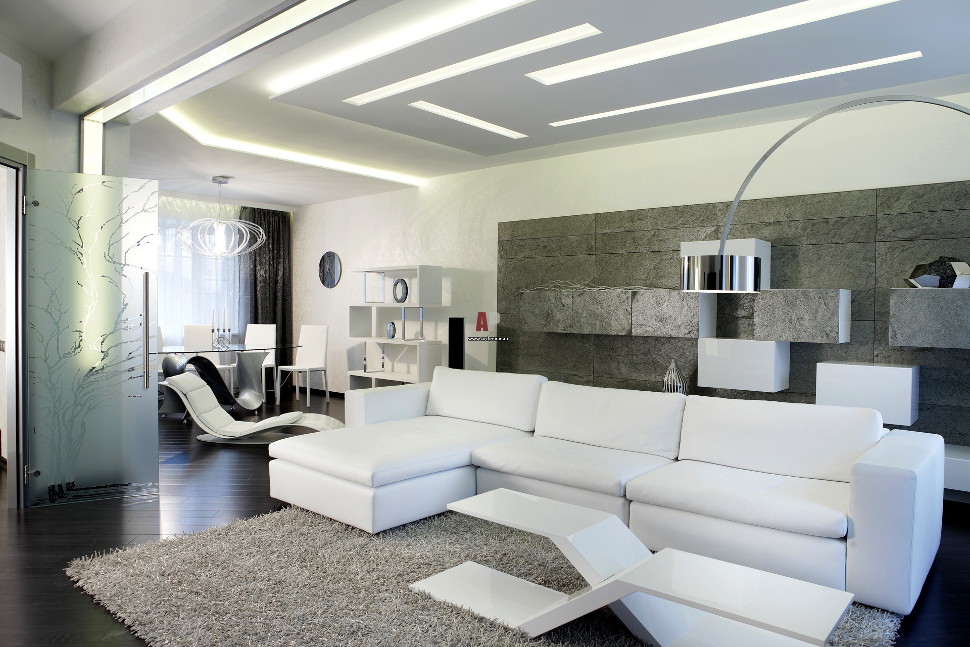 Na maioria das vezes para a sala de estar no estilo de alta tecnologia tomar as seguintes cores: