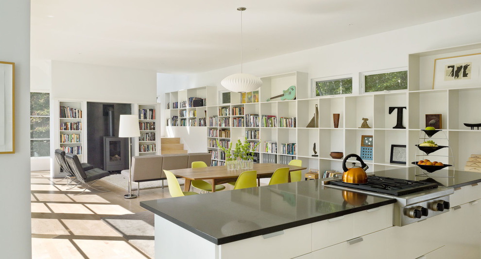 - A presença de linhas retas no design, o mobiliário é formas simples.