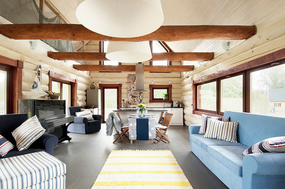 Se eu tivesse uma casa de campo luxuosa, gostaria de equipar a sala de estar em estilo escandinavo.Simplicidade requintada, luxo e elegância discretos, muita luz e um mínimo de cores - tudo isso inclui uma solução de design para os amantes da fria Escandinávia. Esta é uma opção para quem quer muita luz e cores brilhantes no design.