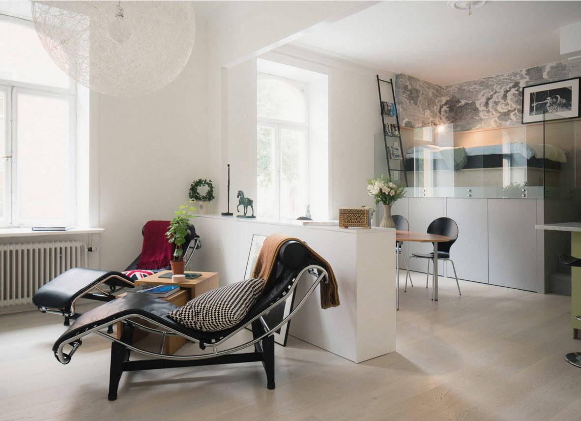 Quartos espaçosos, cheios de luz, linhas largas, estética despretensiosa, são típicos de muitos interiores minimalistas. Apenas necessário mobília e acessórios que são usados de tal forma que existe um espaço vazio entre os objetos. A abundância de luz natural ajuda a atmosfera a ser quente, acolhedora e não fria, estéril.