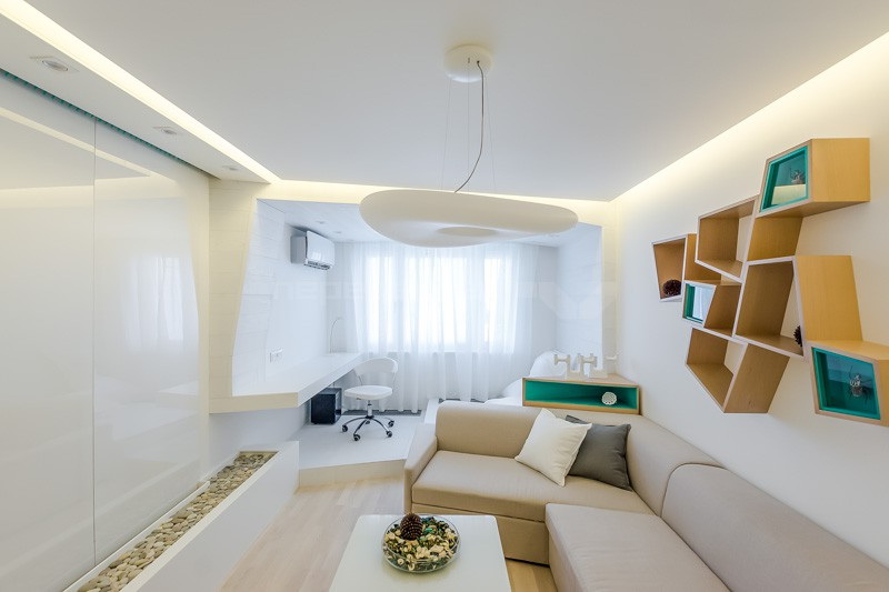 - criar um minimalismo caloroso através da instalação de iluminação, compreensão do espaço positivo e negativo, as proporções corretas.