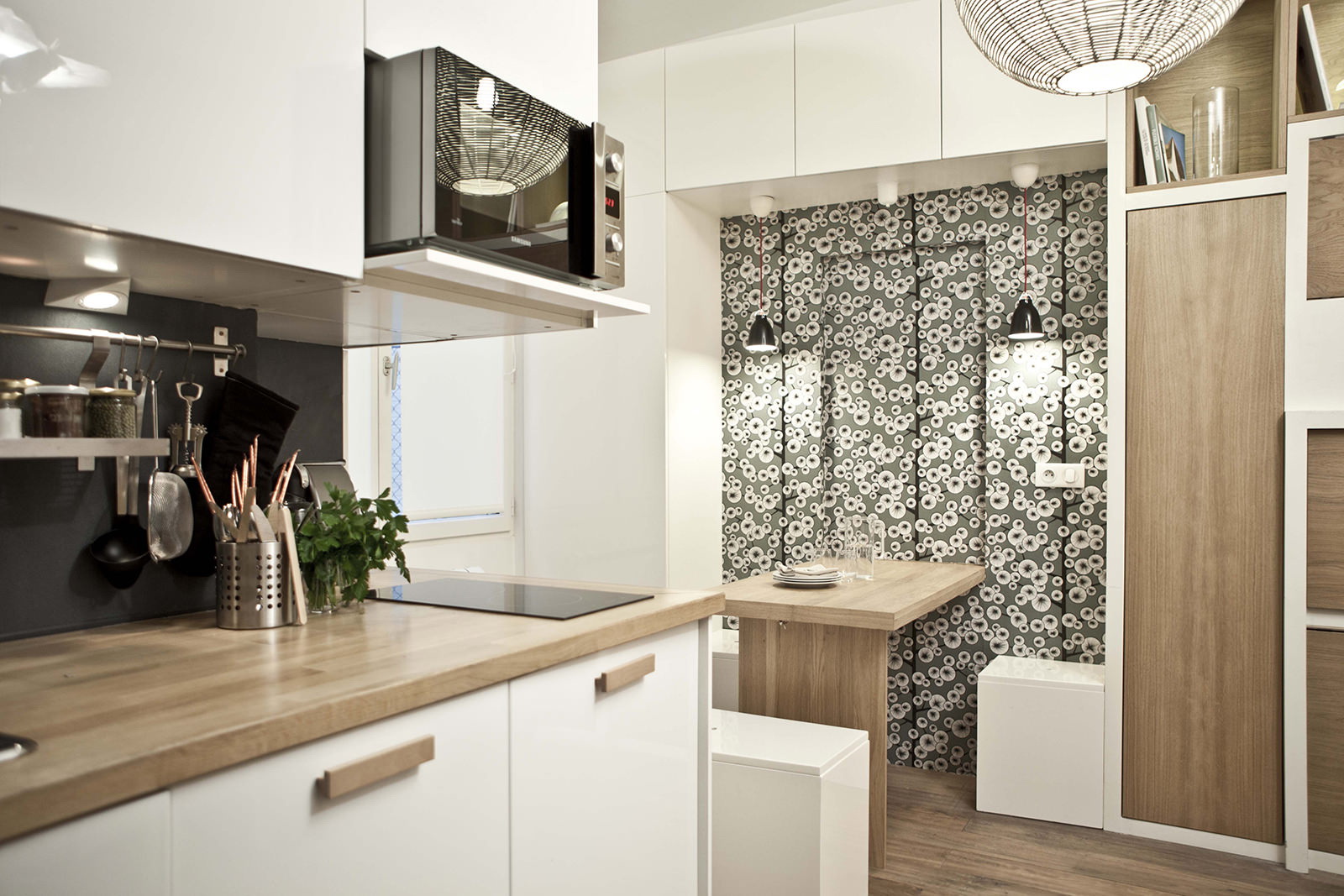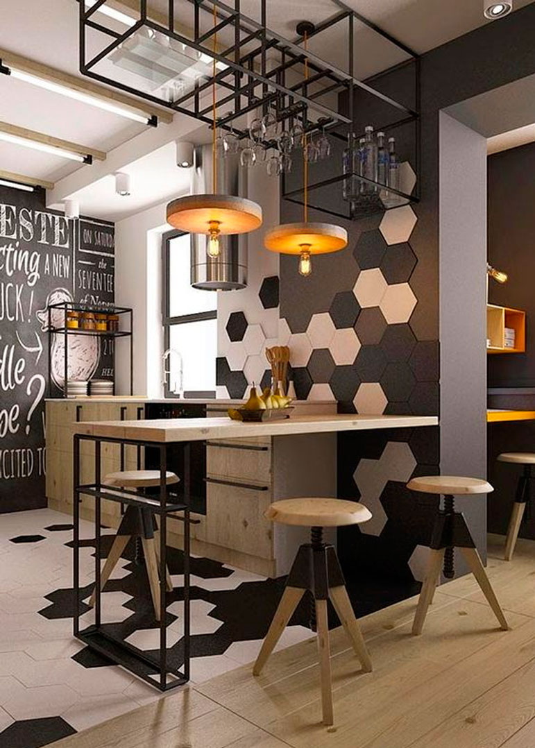 Design espaçoso, decorações simples estimulam a mente, ajudam a concentrar-se na culinária.