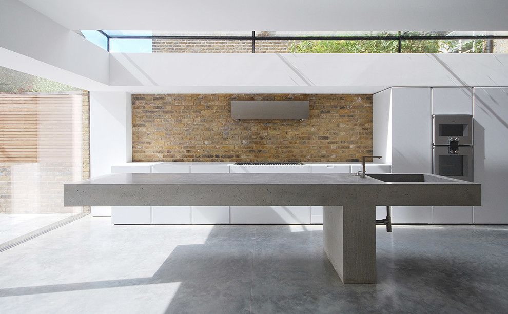 Mínimo cozinhas - Estes são projetos de cozinha modernos feitos sob medida e elegantes em um estilo minimalista. Projetos mínimos de cozinha demonstram simplicidade e funcionalidade elegantes. Inovador design de cozinha moderna em estilo minimalista é ótimo para cozinhas modernas com uma ilha no centro.
