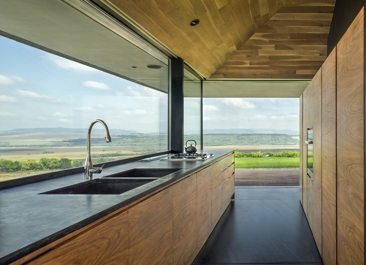 Concreto com madeira, vidro com metal, cinza com madeira clara neutra, decoração da sala com flores, janelas grandes, luz natural fazem a cozinha sem interferência - para pessoas que gostam de usar seu tempo livre para coisas importantes.