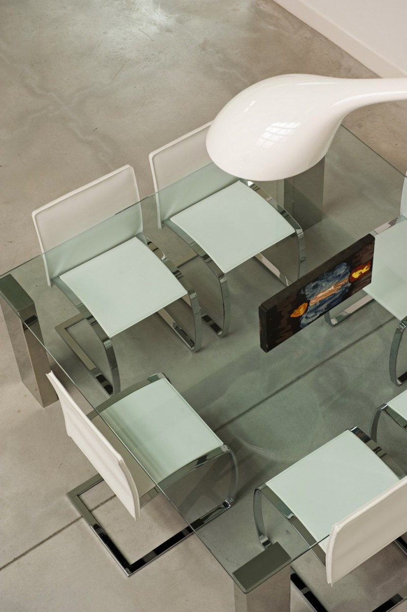 Assim, o estilo de design minimalista é sempre original, você pode ser um inovador em sua sala de estar, substituindo o tradicional sofá com linhas limpas e uma forma nítida, em um modelo mais conveniente e diário de vidro mesa.