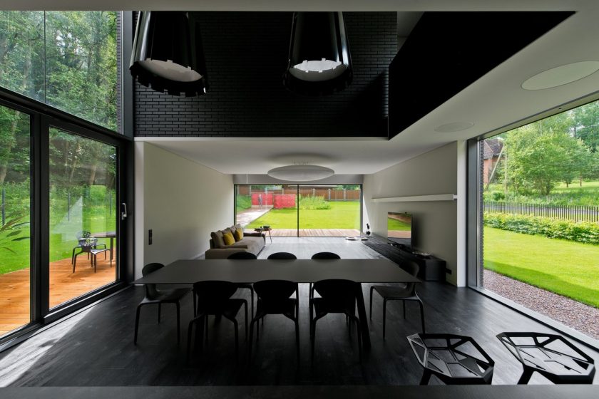 Aberturas perfuradas planas para portas e janelas acentuam fachadas. Em geral, há um projeto simples de casa que permite evitar muitas entradas e saídas, um conjunto de curvas ou cantos. Perfis de telhado simples também são característicos em casas minimalistas.