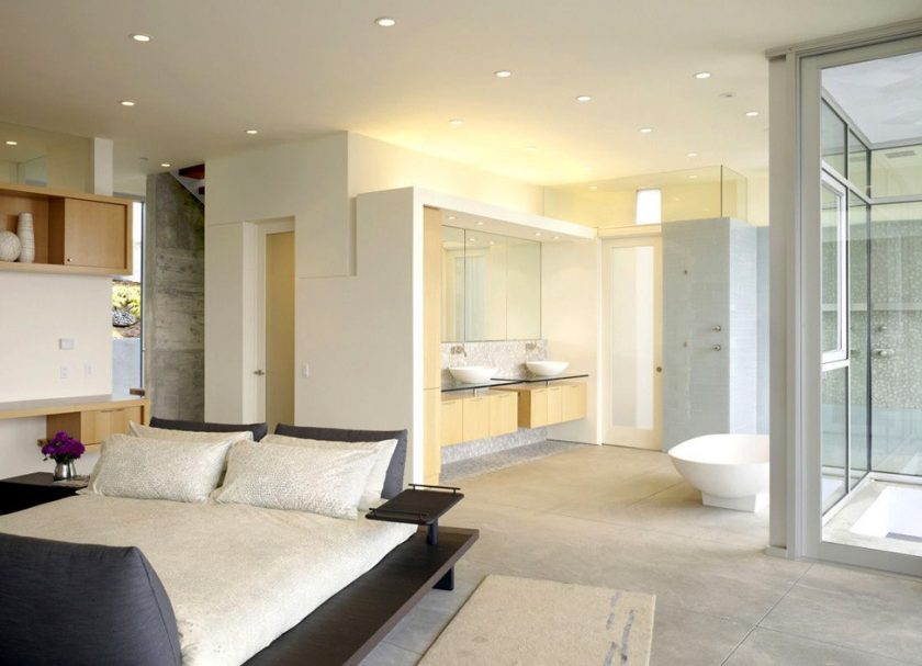 Muitos em casa estilo minimalista tem um layout simples, claro e eficaz com uma quantidade compacta de espaço. Isso cria previsibilidade, sem complicações. Formas simples, plantas de piso aberto, paredes internas mínimas, espaços de armazenamento modestos, ênfase na visão geral e na luz do dia definem as características de muitos planos minimalistas.