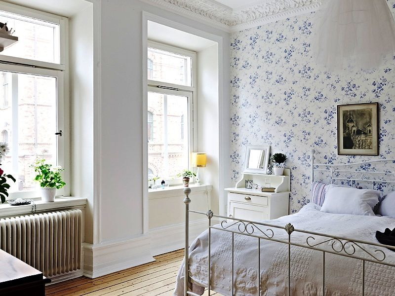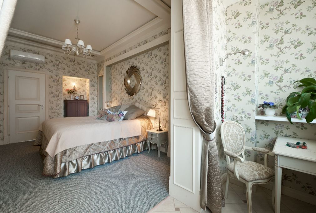 Falando sobre o estilo da Provence, não se esqueça de anotar o tema das flores. Ela corre o fio principal através de todo o design. O desejo de estar mais perto da natureza, de extrair força e inspiração é refletido na presença de um grande número de cores em cada sala.