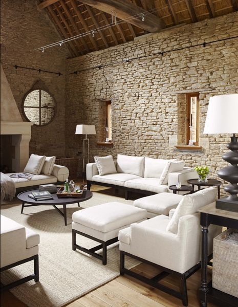 Tijolo ou pedra de alvenaria, bem como guarnição de madeira, especialmente vantajoso quando combinado com outros materiais de acabamento. O uso simultâneo de várias texturas dentro de uma sala enfatizará o estilo e dará às características individuais da sala.