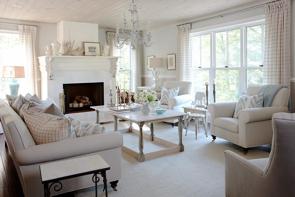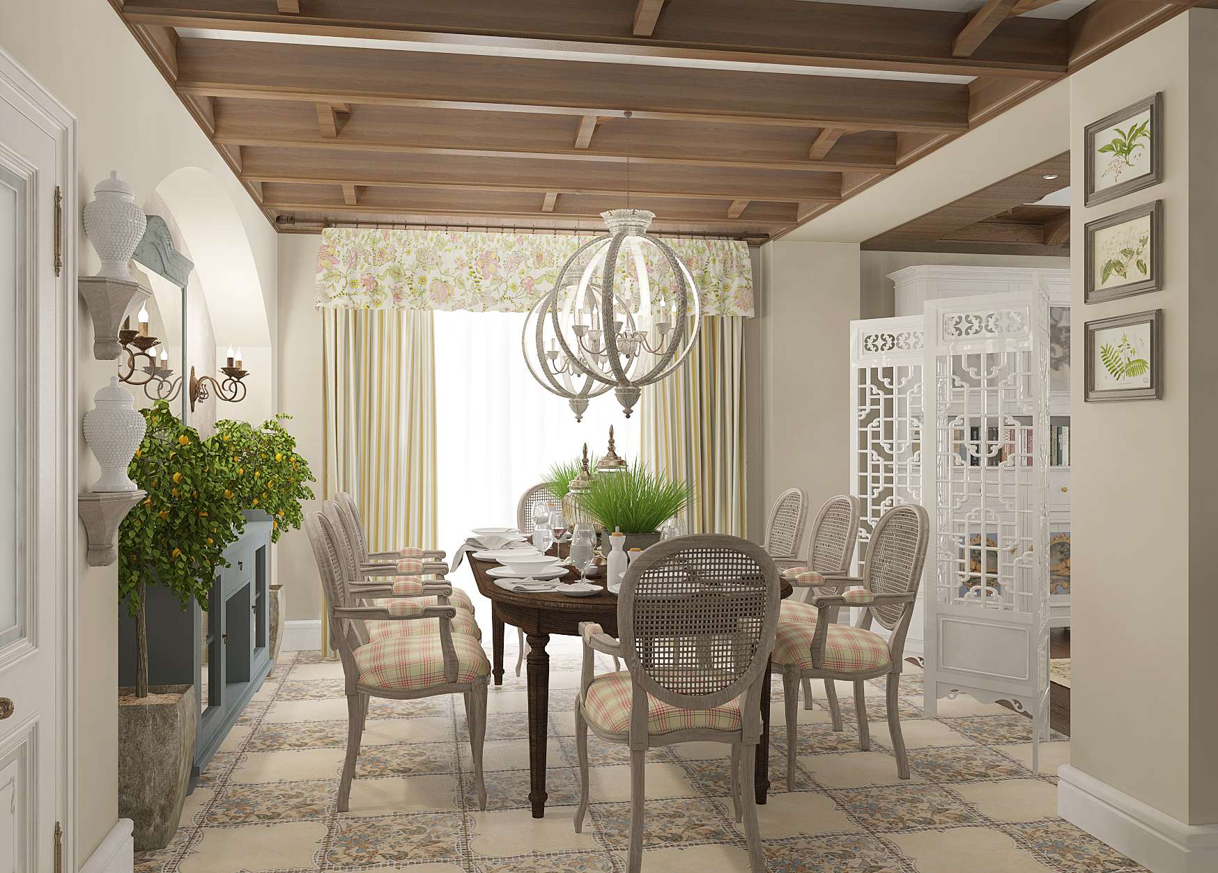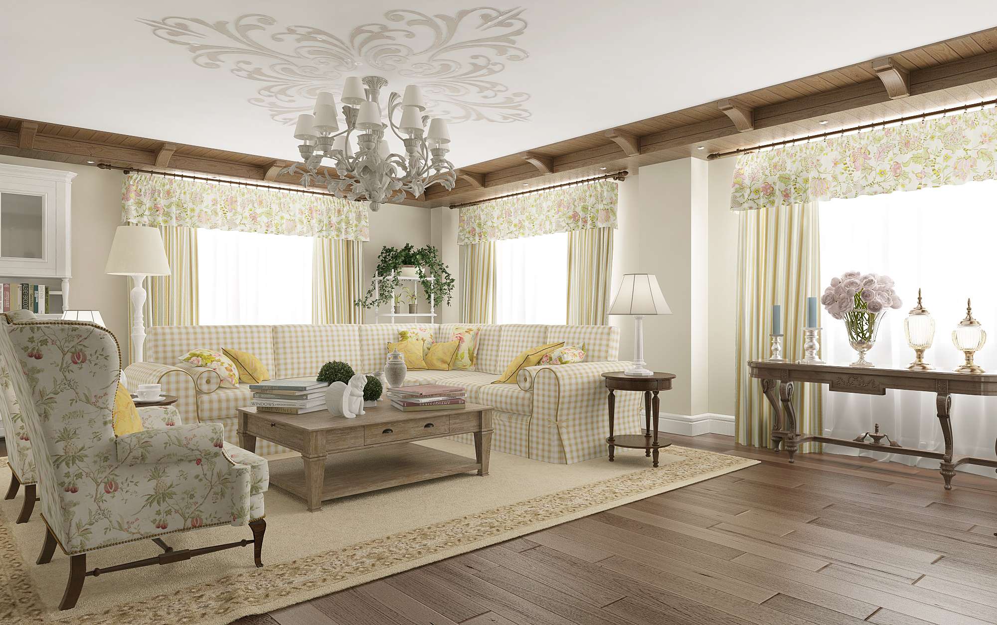 Pois o estilo provincial é caracterizado pelo uso de materiais naturais e a ênfase na beleza natural e textura. A abundância de luz solar e a sensação de plenitude da sala com o ar são criados por tetos altos e claros.Bem adequado como acabamento em gesso, branqueamento ou pintura. A prioridade é branca.