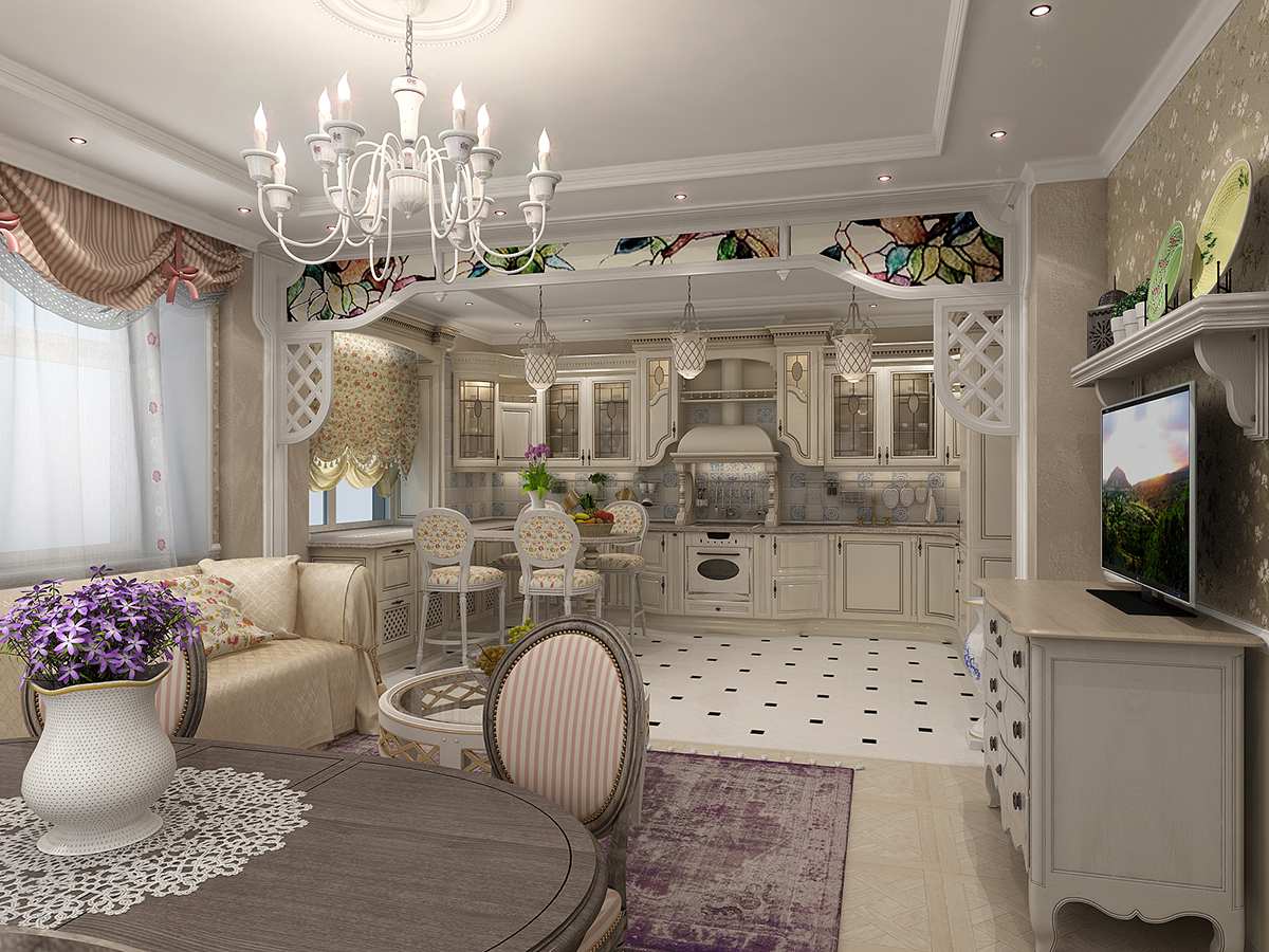 Onde começamos o design? Com reparo. Deve ser realizado em conformidade com todas as condições do estilo provençal.