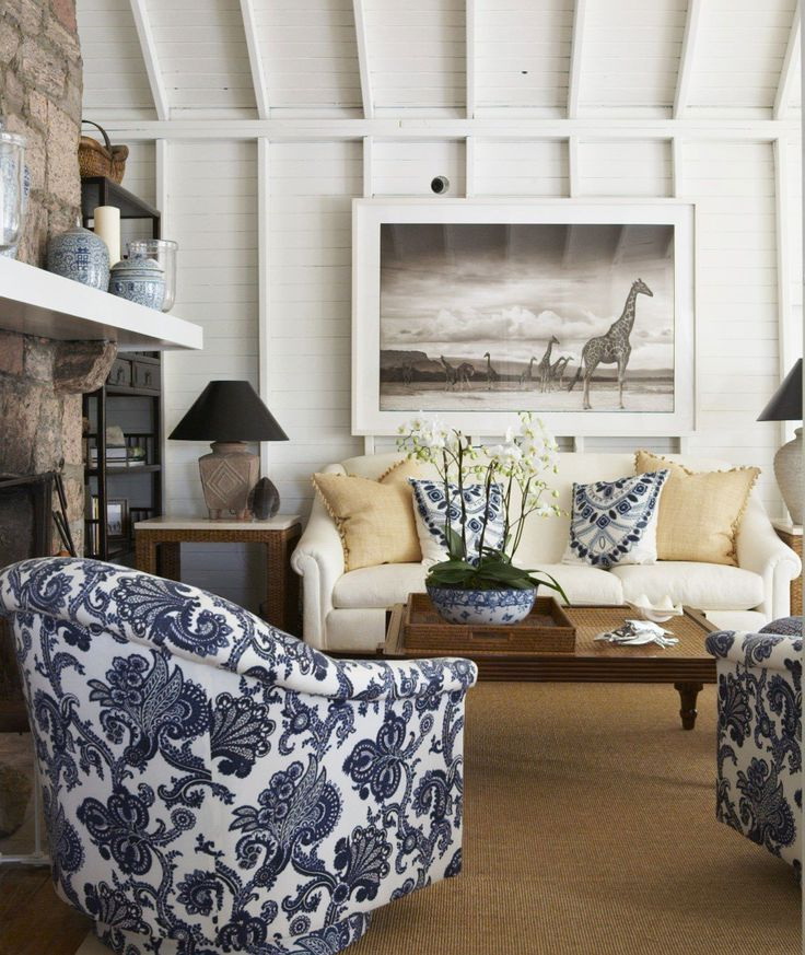 - luz monofônica ou com estofamento de móveis estampados com pequenas flores;