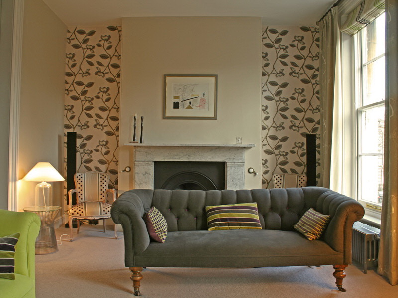 Papéis de paredeR: Os papéis de parede se tornaram muito populares durante esse período, especialmente os papéis de parede de bandos. Hoje, existem muitas reproduções da década de 1960, como Paisley ou florais.