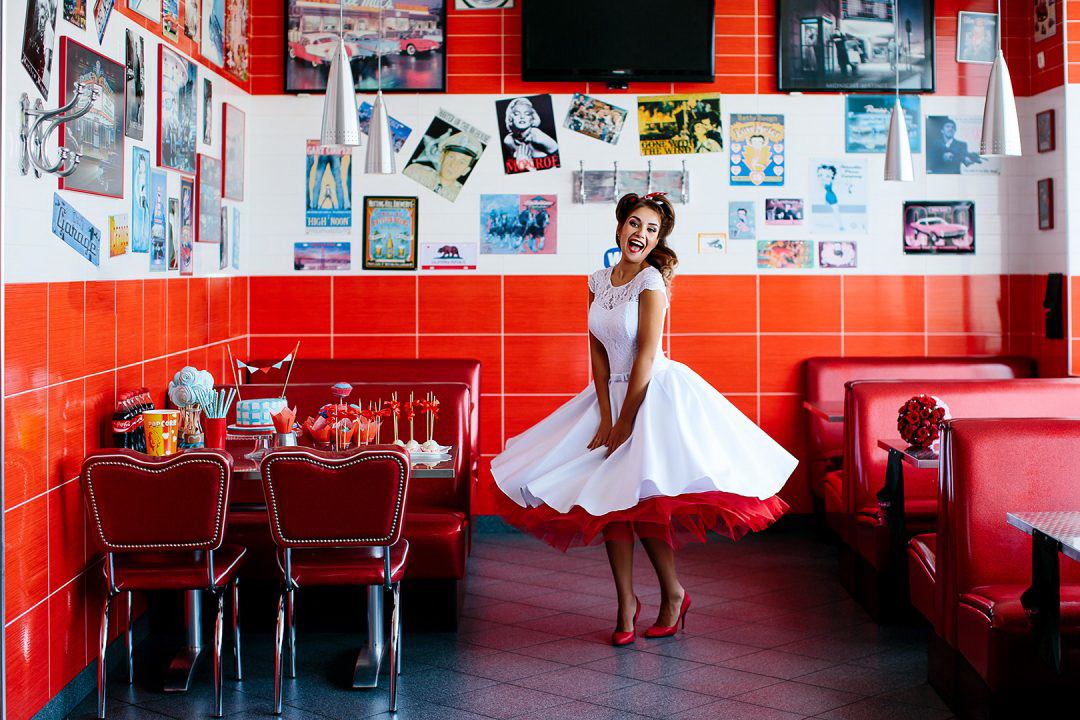 O estilo retro cria uma atitude especial: impetuoso, alegre, brilhante, único. Esta é uma atmosfera chique e alegre memorável, uma combinação incomum de antiguidades e materiais artificiais.