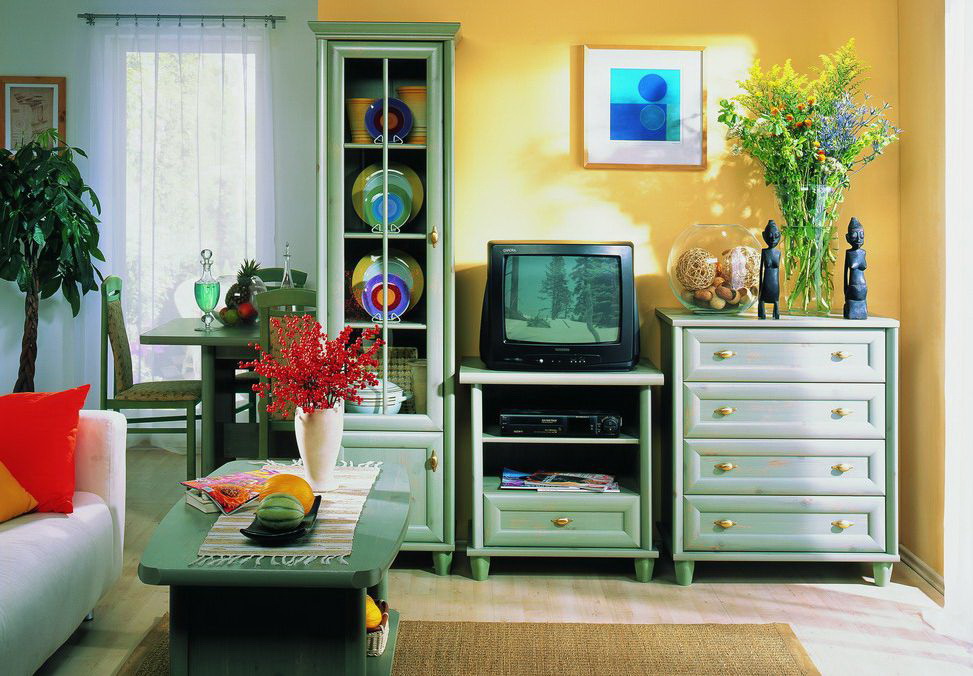 Os anos 70 - a era do disco: os tons anteriores foram expandidos em ouro, azul, brilhanteverde. Brilho, brilho, diversão - é assim que você pode descrever o humor daquele período. Havia grandes na moda sofásbanquinhos de bar armários, sideboards, revista mesasotomanos.