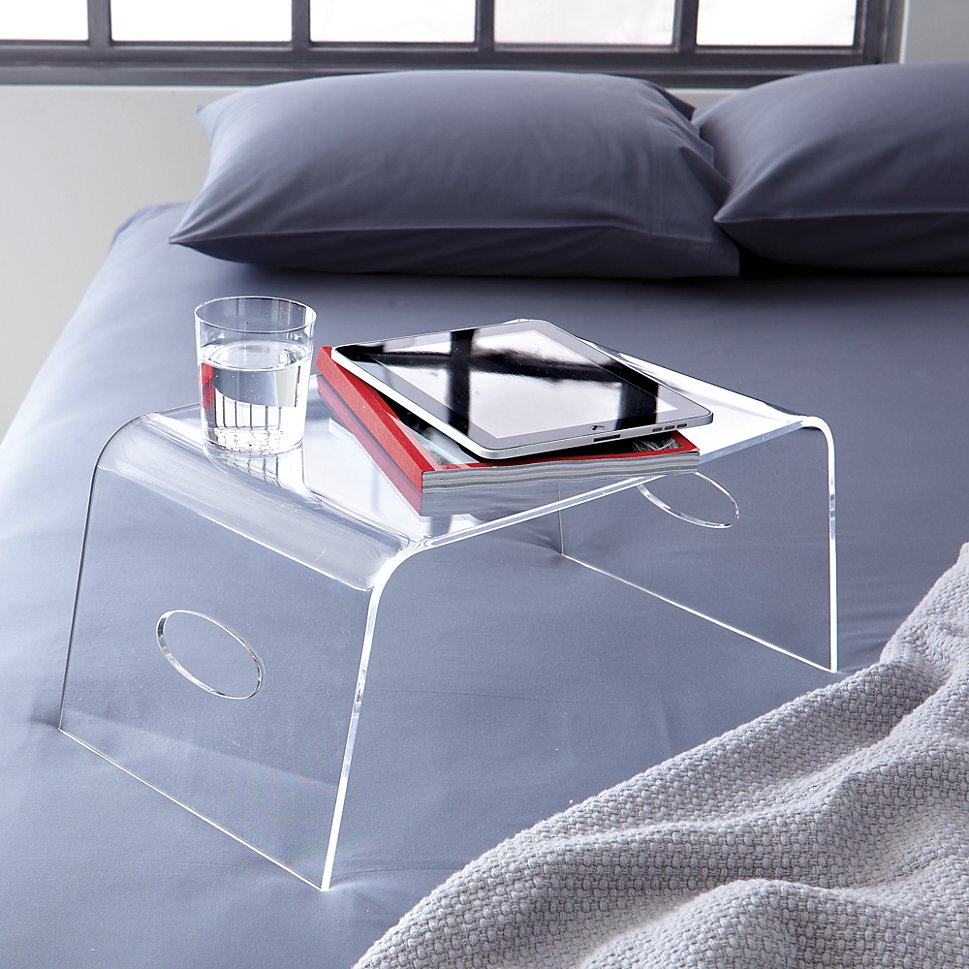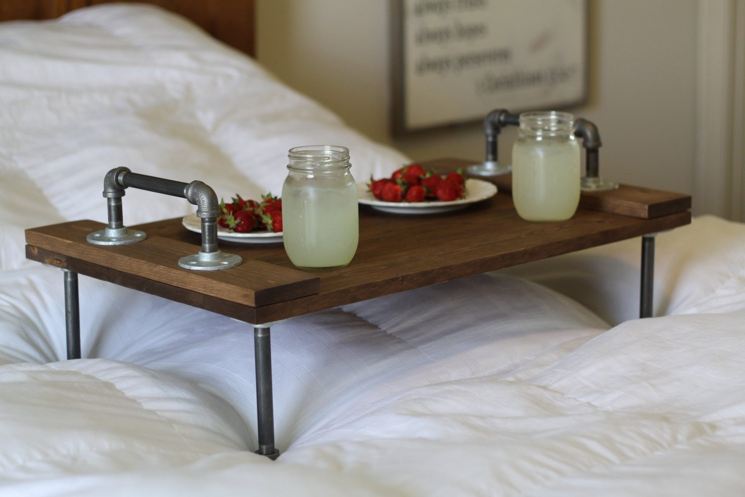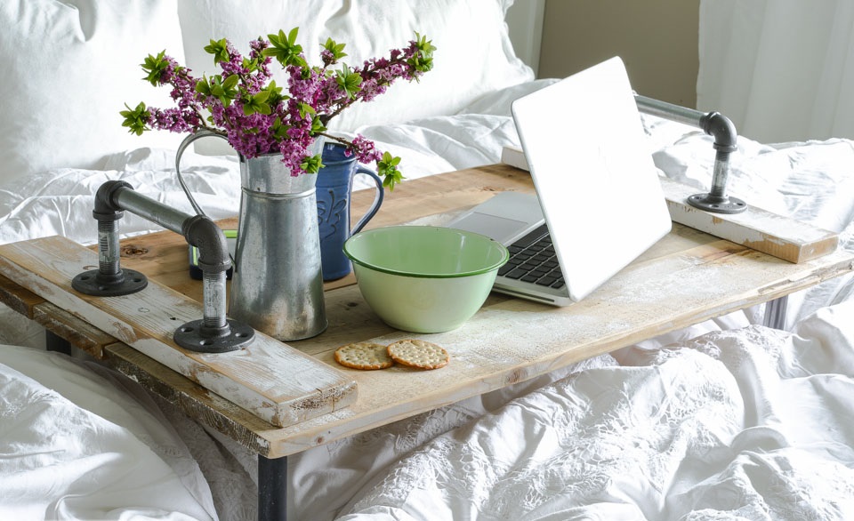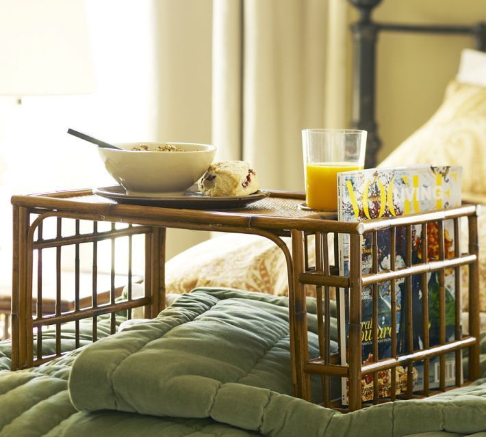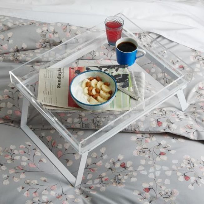 Considere usar uma bandeja. Todos eles são destinados para uso na cama. No entanto, considere a compra de uma bandeja de cama que é flexível o suficiente para ser usado para diversos fins, mesmo como uma mesa de jantar que ficará bem na sala de estar.