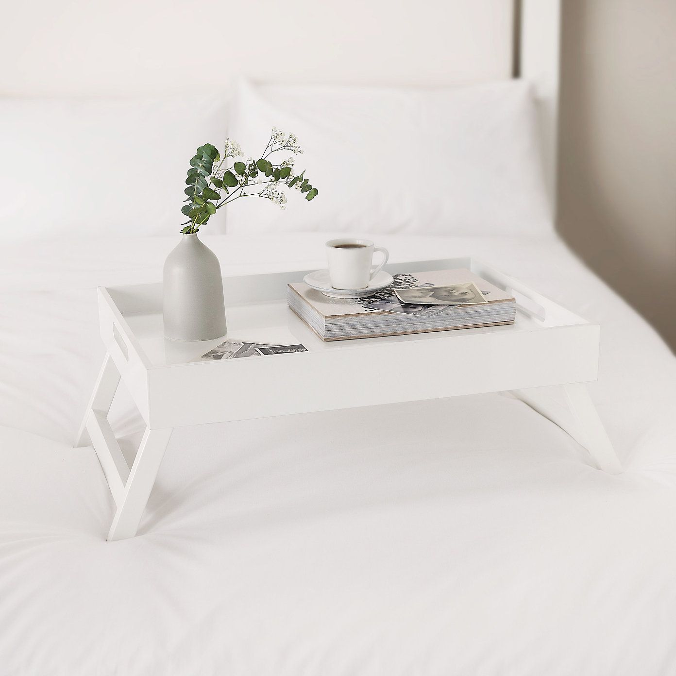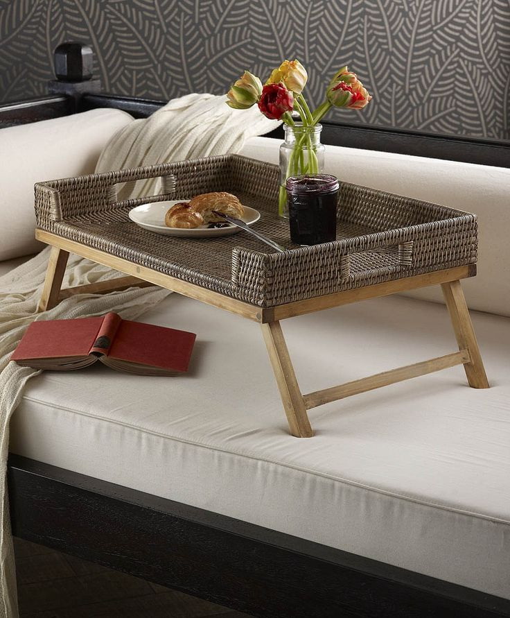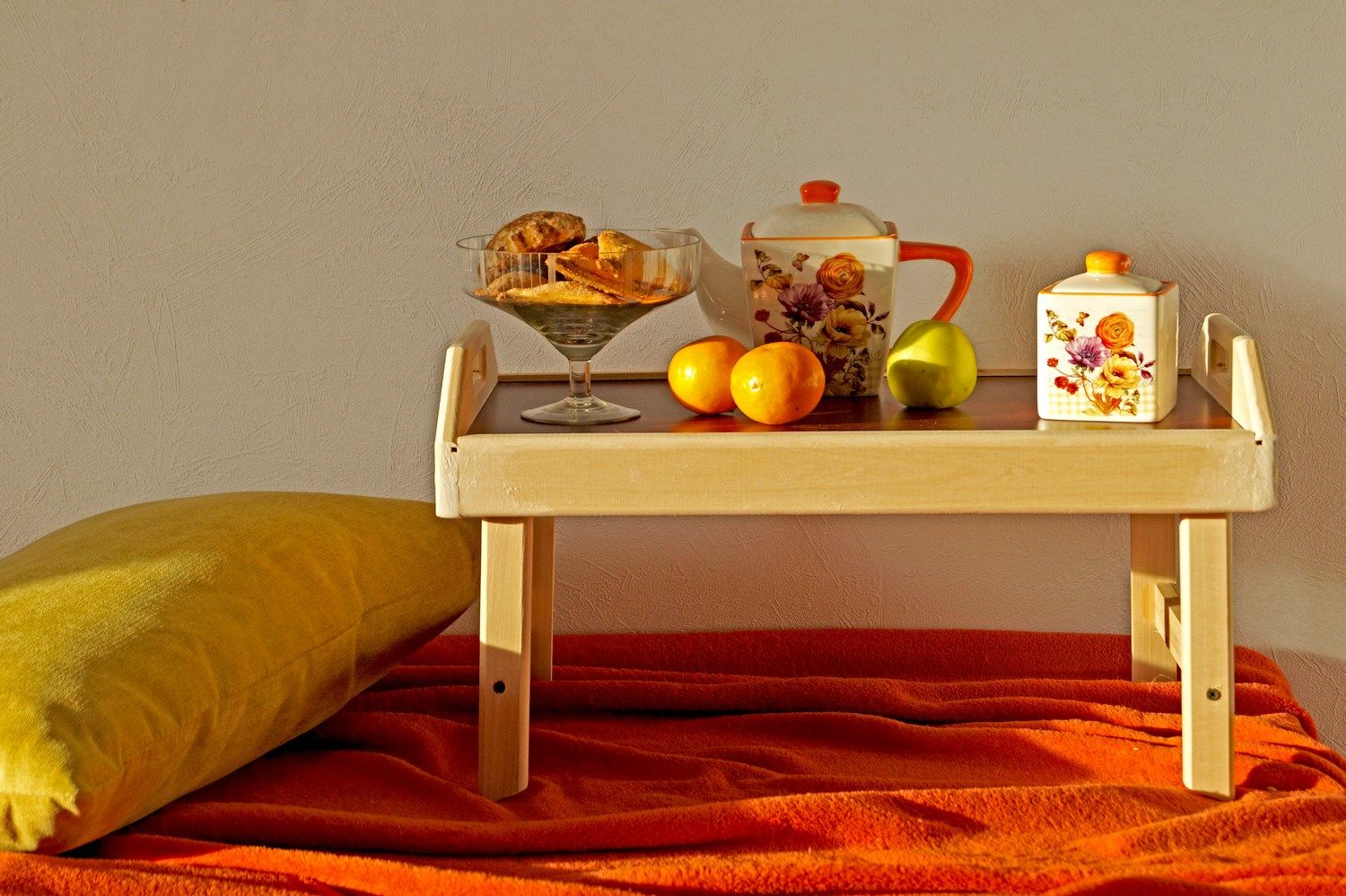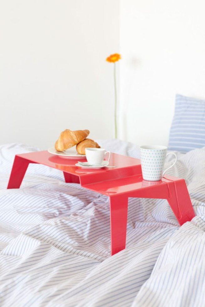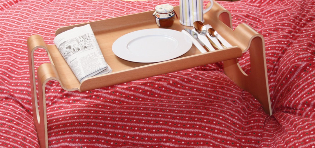 Para aqueles que gostam de passar o tempo na cama de manhã, nada torna a vida mais fácil do que uma mesa de café da manhã portátil. Mesas de café da manhã na cama apareceram há muitos séculos, e ainda são úteis hoje em dia. Agora as mesas para o café da manhã também podem ser usadas sob o controle remoto da TV, bem como para acomodar seu laptop. Na maioria das vezes eles são usados para um café da manhã conveniente ou um chá delicado na cama.