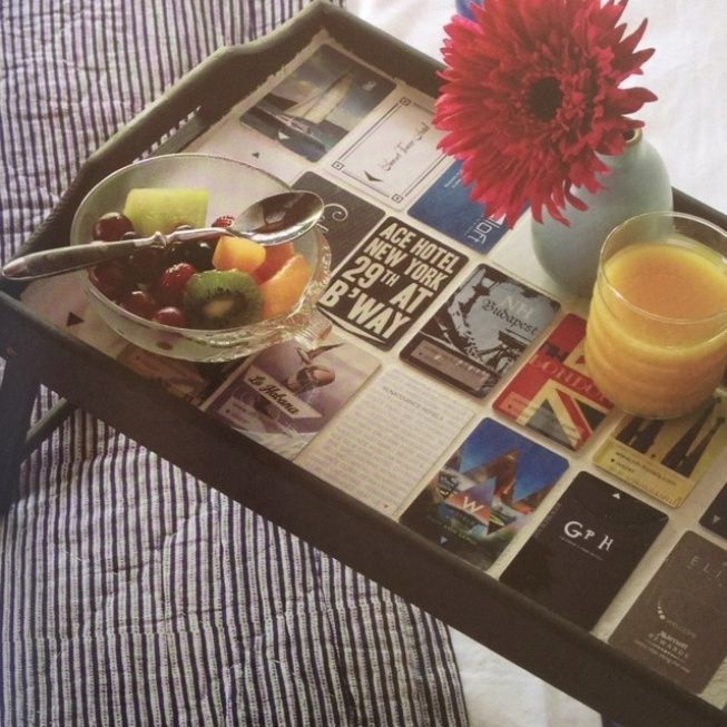 - e até mesmo bandejas de café da manhã com uma bandeja removível.