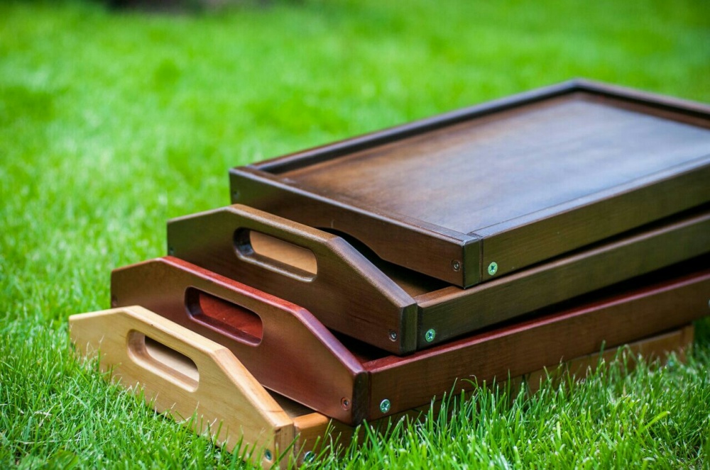 Isso não é tudo: você tem a oportunidade de escolher o tipo de acabamento que deseja ver na bandeja de café da manhã. O melhor da madeira nas cores seguintes, é claro, parece o mais bonito: