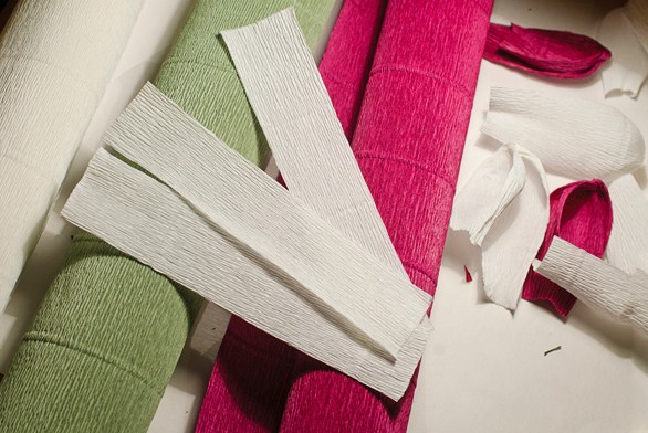 - papel crepe (ondulado) de diferentes cores, folha, fita de embalagem, etc .;