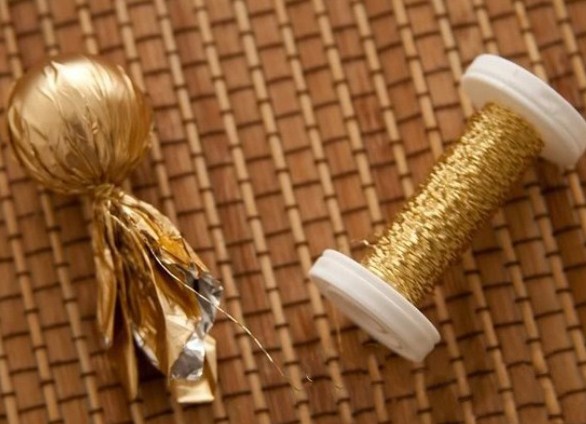 Para decorar a beleza do Ano Novo, você precisa fazer alguns ramos pequenos com botões, botões, inserir doces dentro e a árvore do Ano Novo vai mudar, ficará mais brilhante e perfumada.