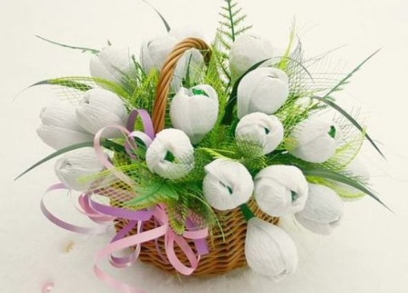Eles não vão desaparecer, permanecendo bonitos e brilhantes, agradando os olhos por um longo tempo. Ao mesmo tempo, as flores se tornarão um presente maravilhoso e não trivial, se elas mesmas esconderem um delicioso meio doce.