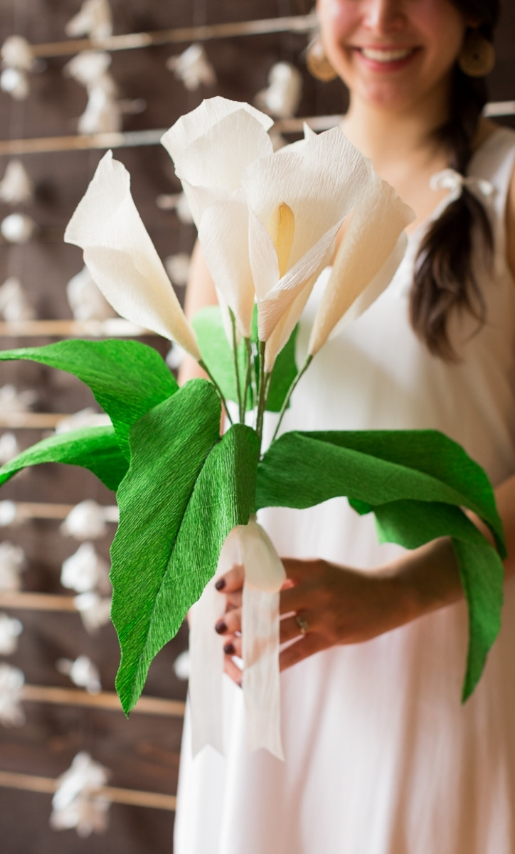 Hoje, flores feitas de papel crepom com doces ou arranjos de flores inteiras são uma boa alternativa.