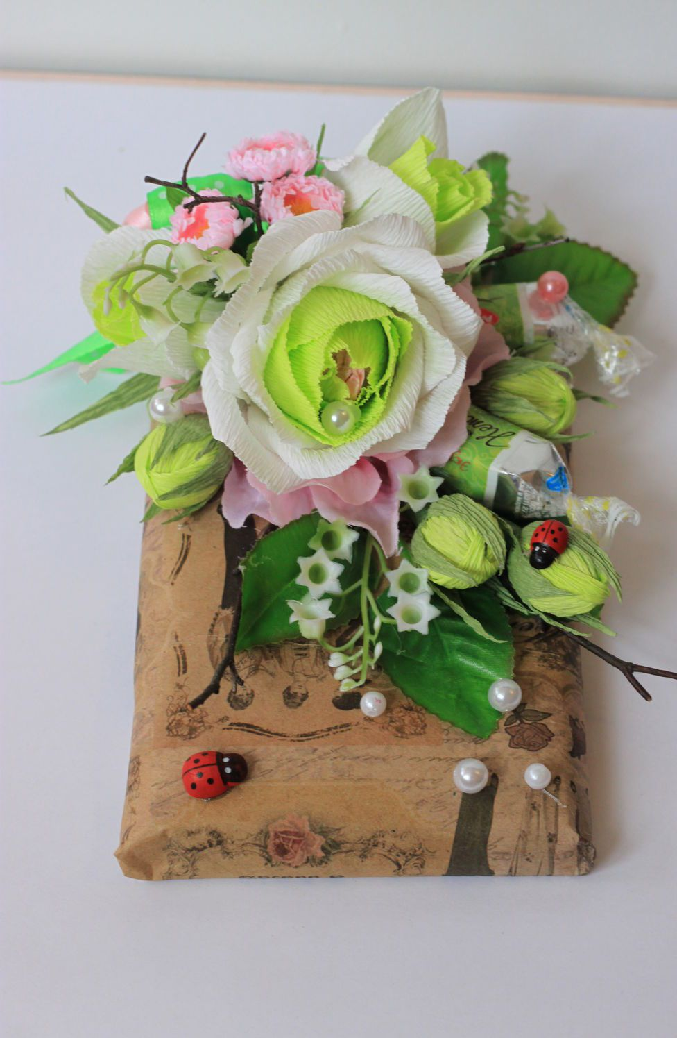 Além da beleza e aroma aromático, o uso de buquês ou flores únicas criadas a partir de papelão ondulado e doces, seu uso é justificado do ponto de vista econômico.