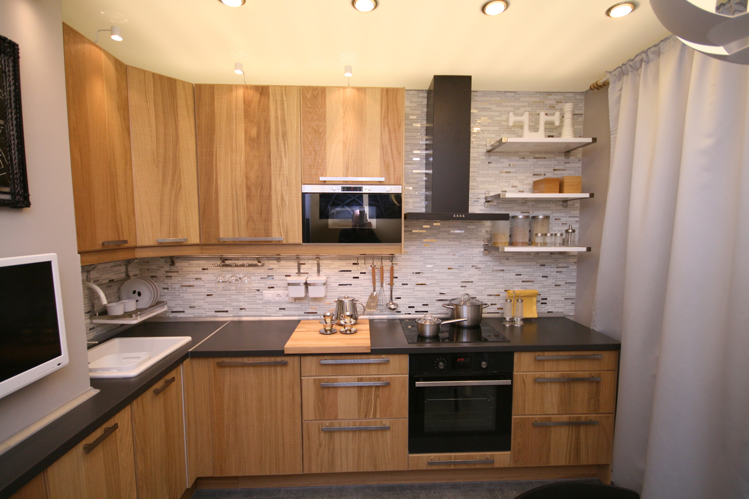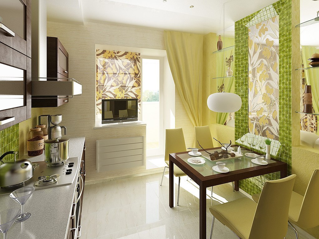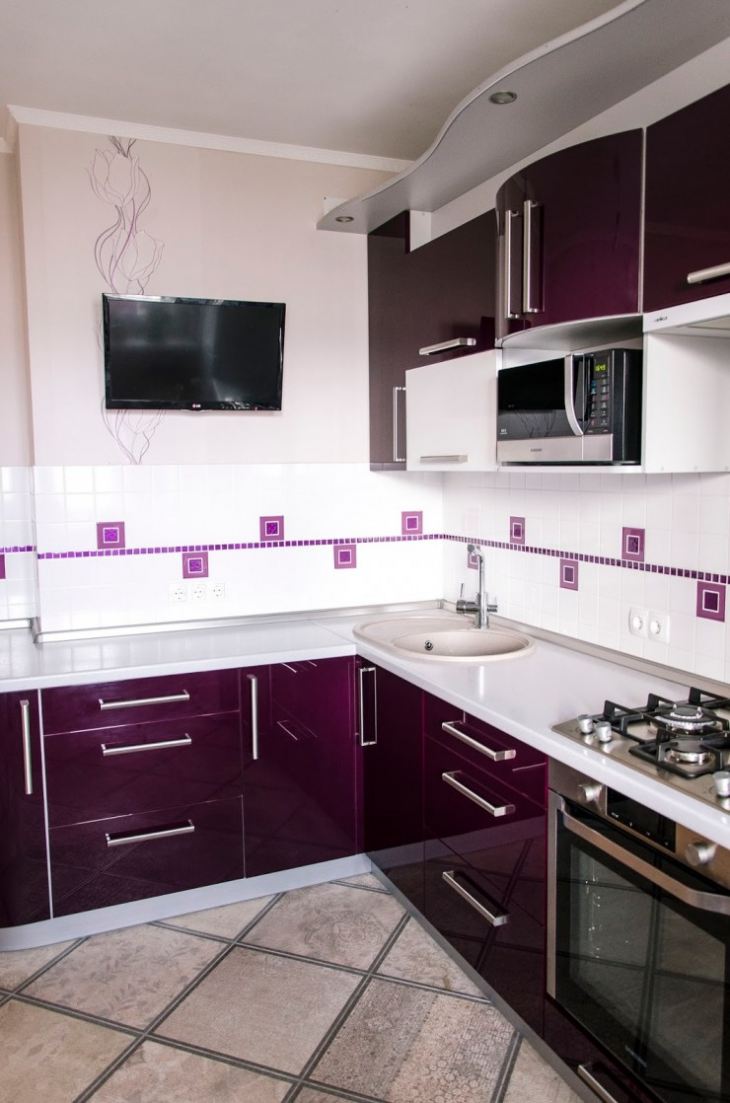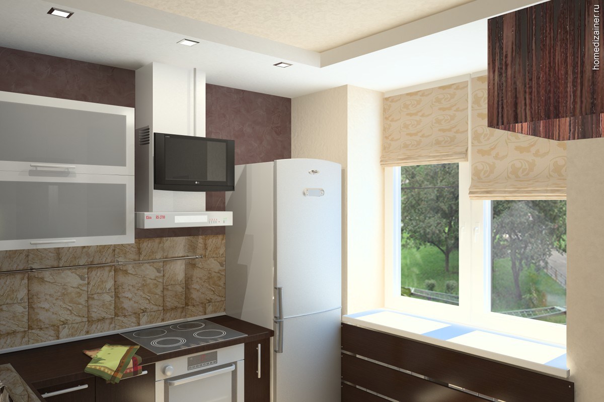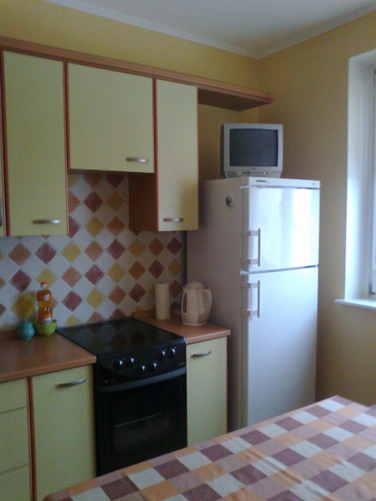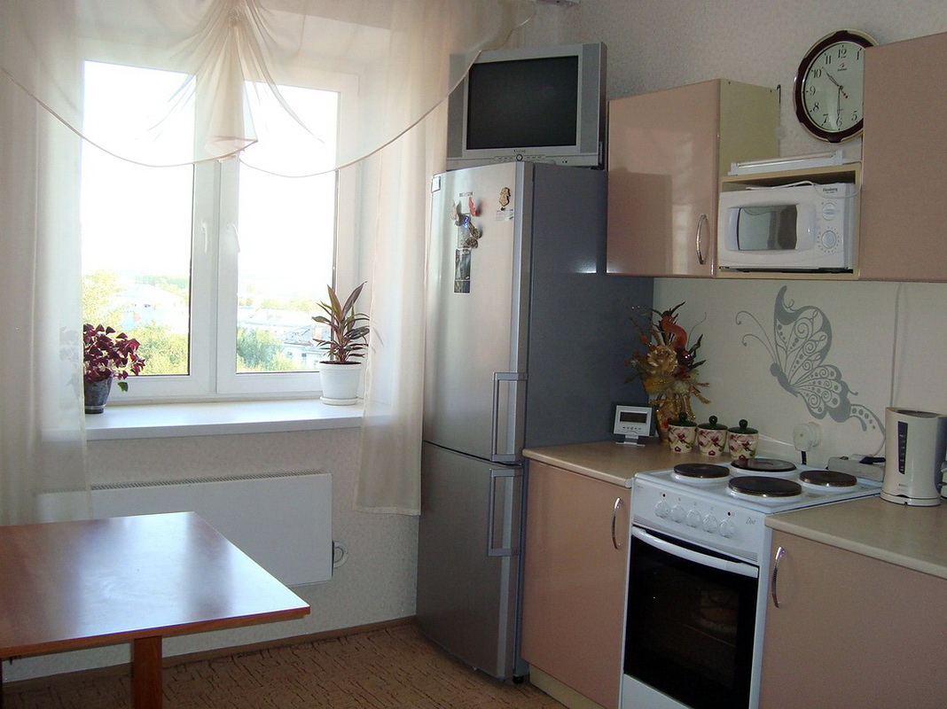 A tela pequena é adequada para cozinhas padrão em Khrushchev, na maioria dos outros edifícios.. Eles geralmente são todos forçados mobiliadoentão não há espaço extra. Melhor tomar uma diagonal de 15-20 polegadas.