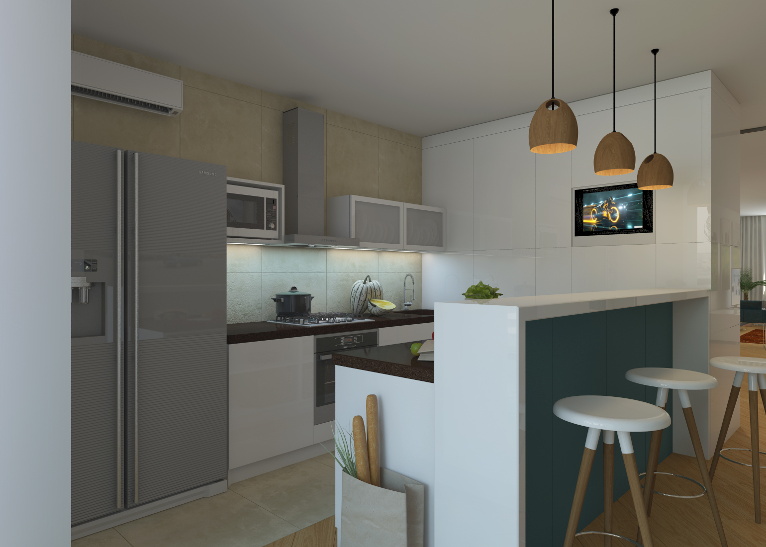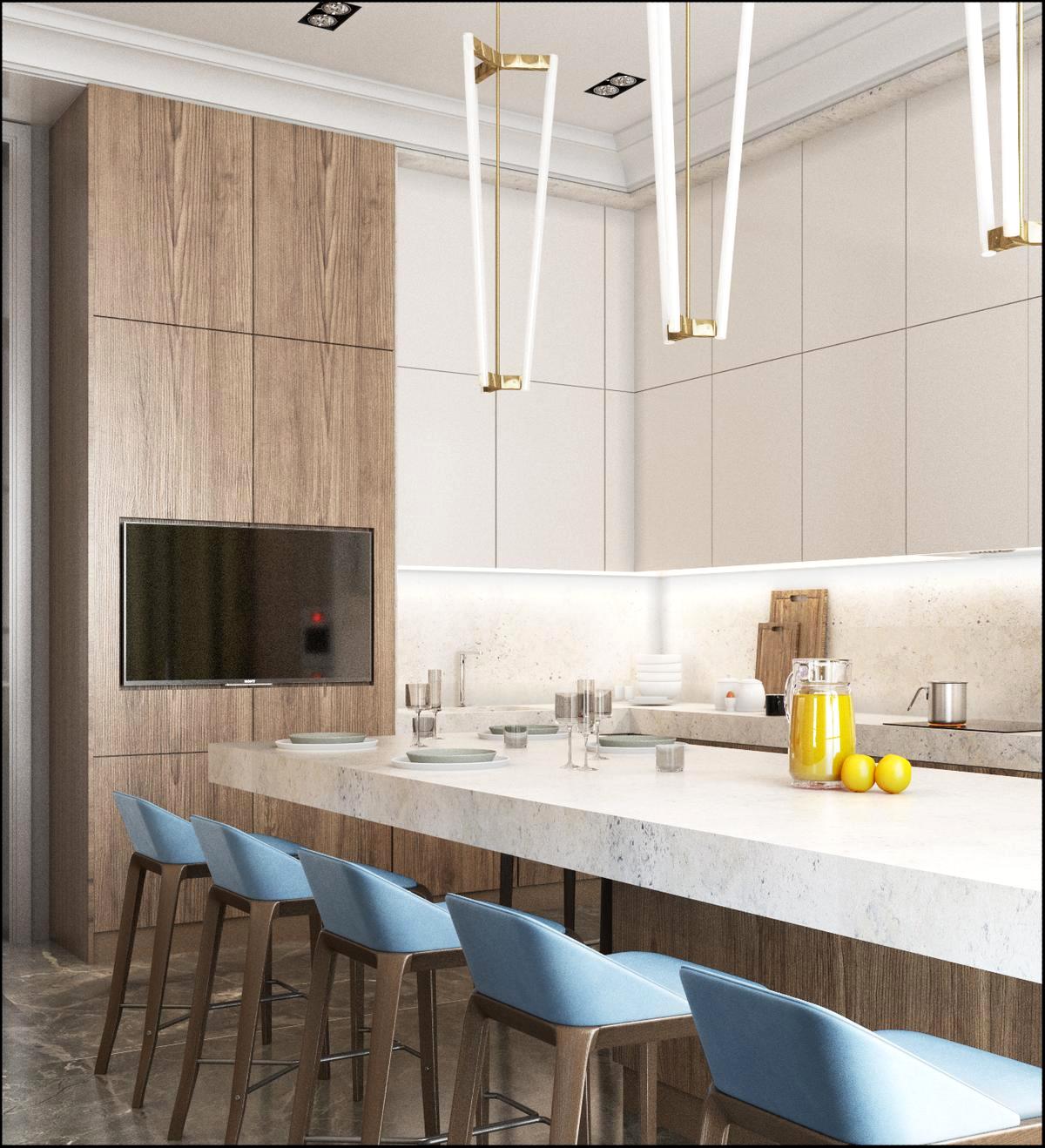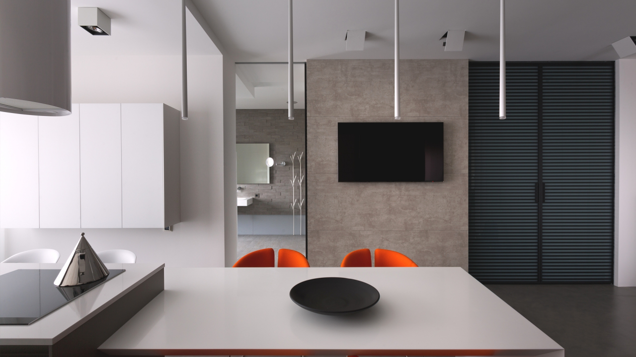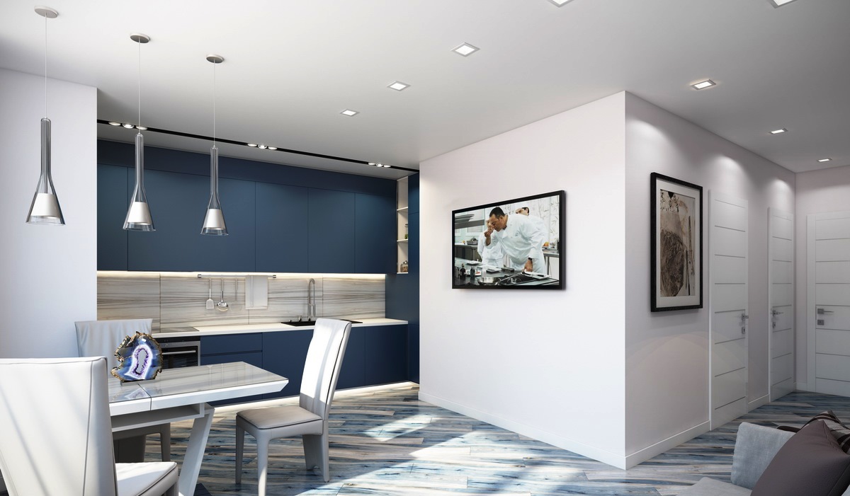 Recomenda-se calcular a diagonal admissível usando a seguinte fórmula: leve a distância de você para a tela, divida por 4. É importante considerar que eles assistirão televisão de partes diferentes da cozinha, então é melhor calcular vários números de lugares diferentes.