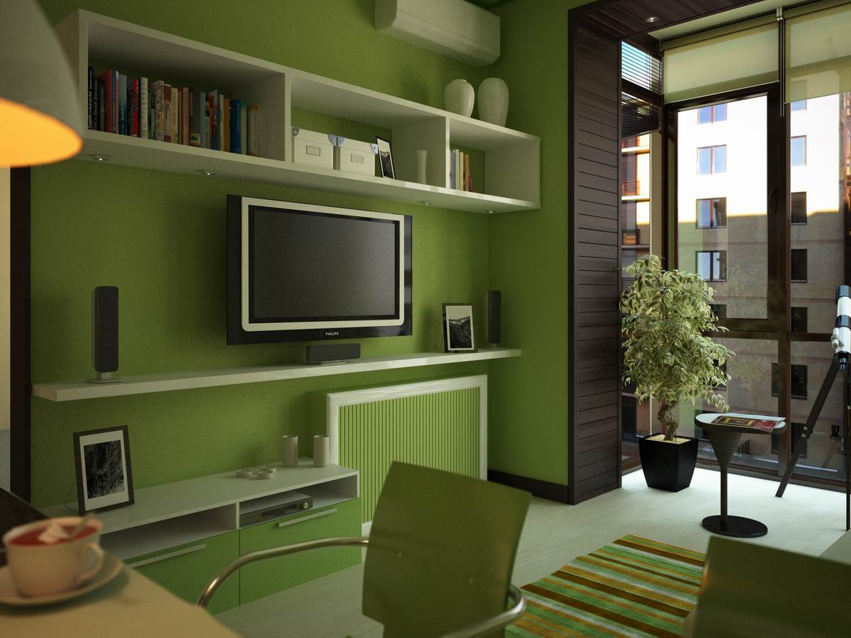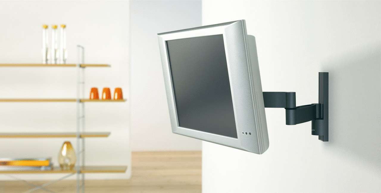 Você pode instalar uma tela em miniatura de maneiras diferentes, a fim de economizar espaço, tanto quanto possível, é melhor desligá-lo com um suporte articulado. Se a mobília, as paredes não permitem acessórios adicionais para ser anexado a eles, você pode usar qualquer prateleiras.