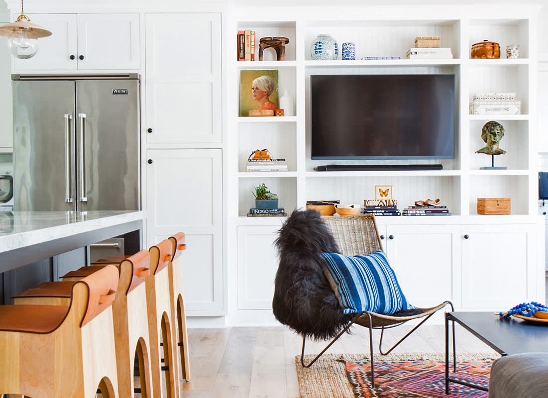- Descartar montado armários, liberando o acesso à TV. Algumas recepcionistas não representam o quarto sem elas, mas quando não estão lá, a sala inteira parece mais espaçosa. Substitua-os por sistemas retráteis e roll-out.