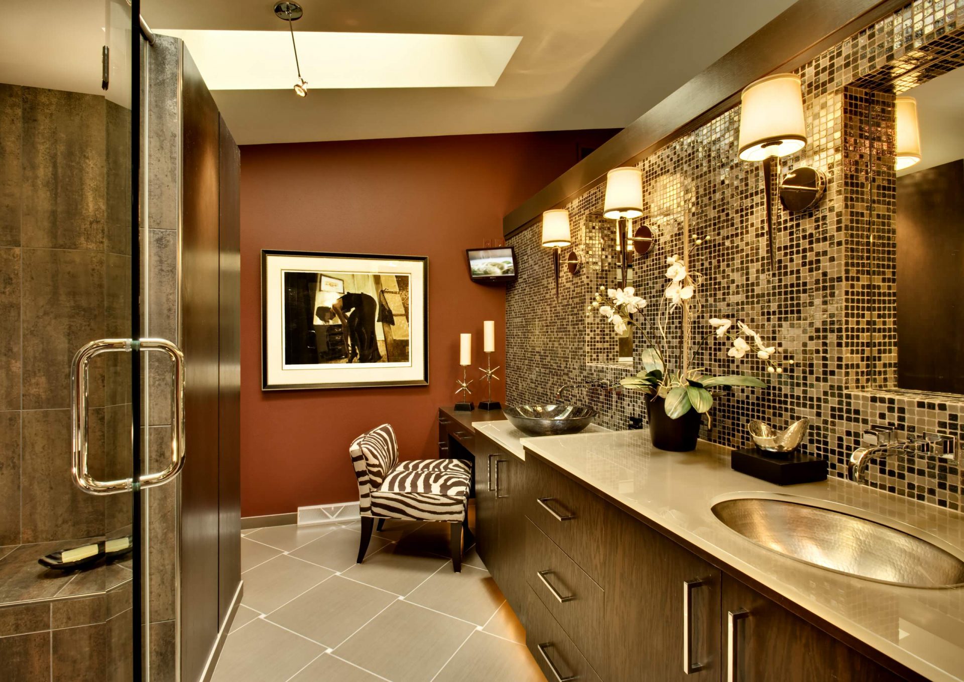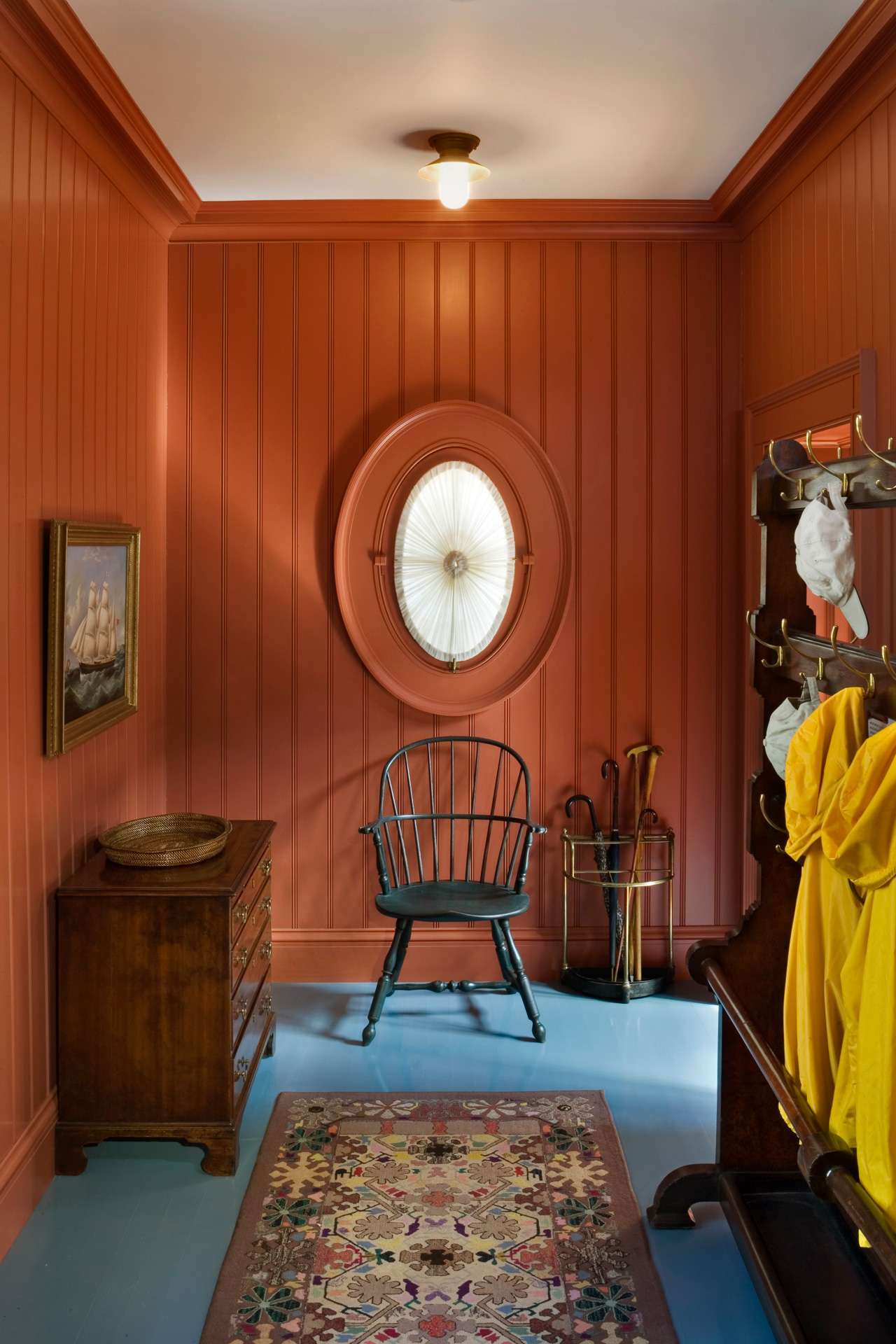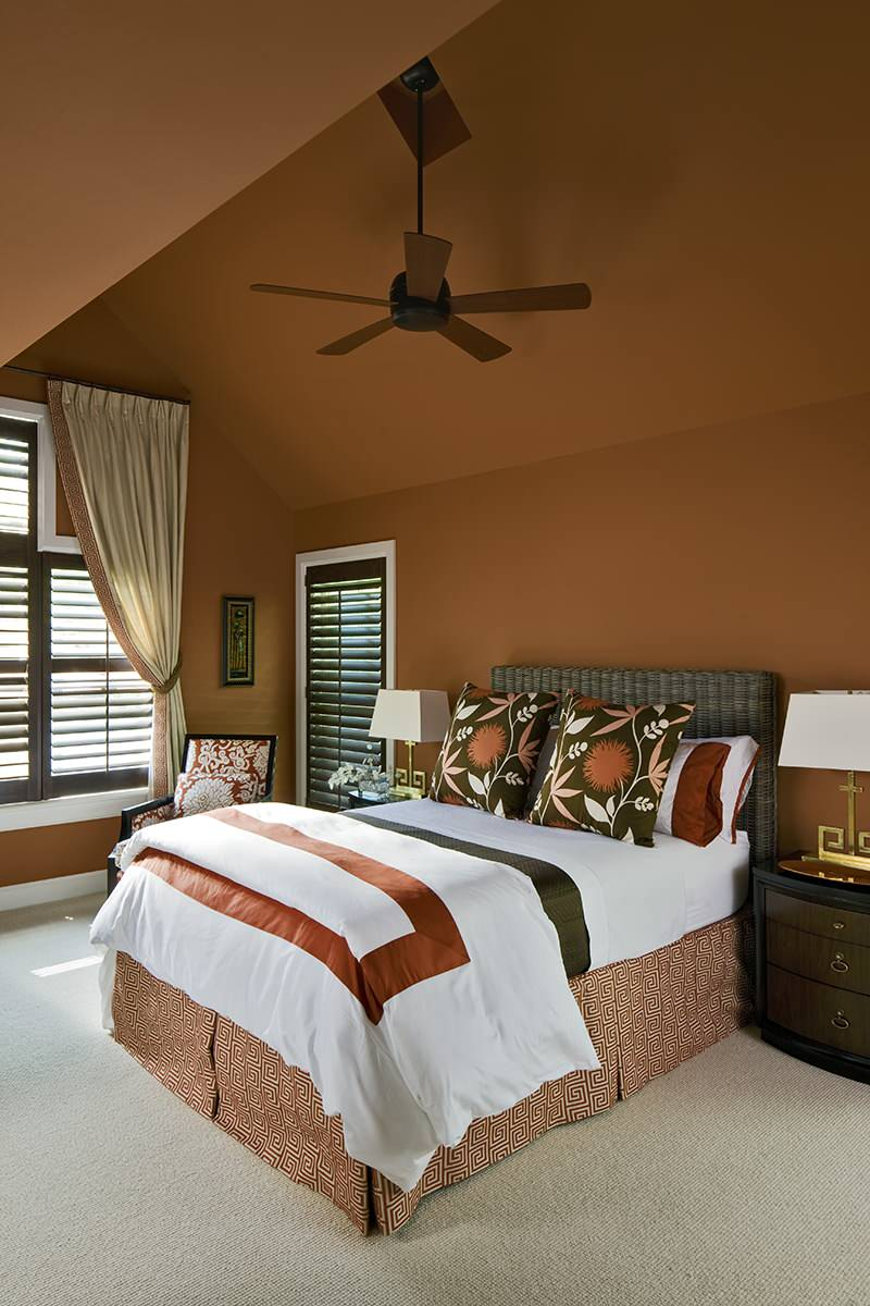 - Quente luxuoso tecto. Pintar o teto com terracota fará com que ele se sinta quente e confortável. Teto colorido acrescenta interesse onde não há nada brilhante. Se você vai escurecer as paredes, tente também escurecer o teto.