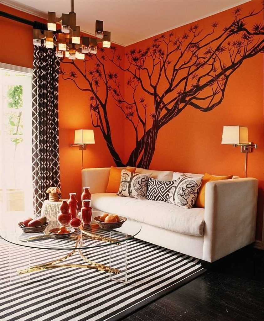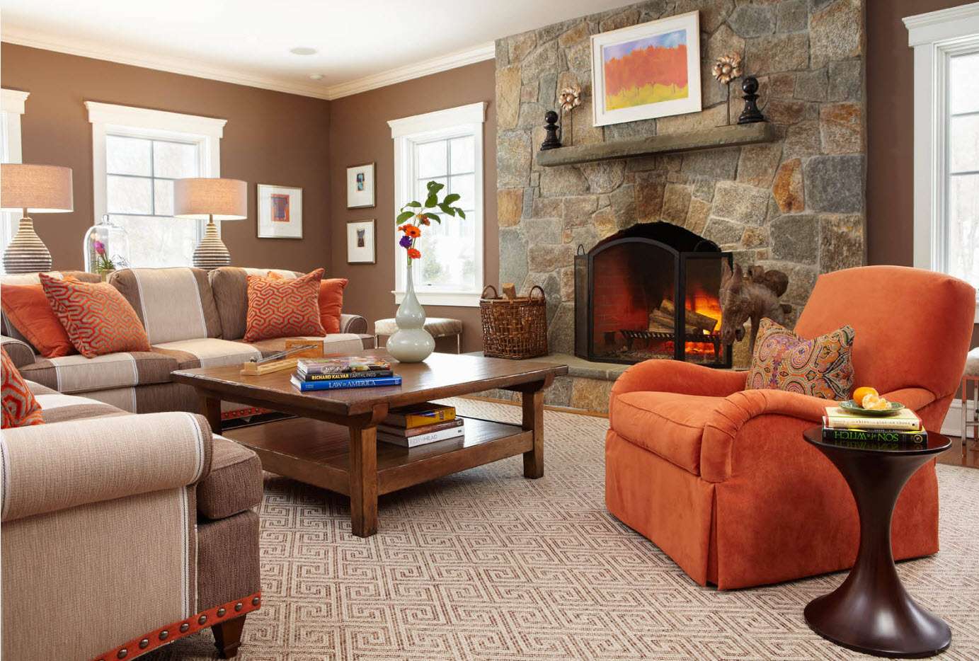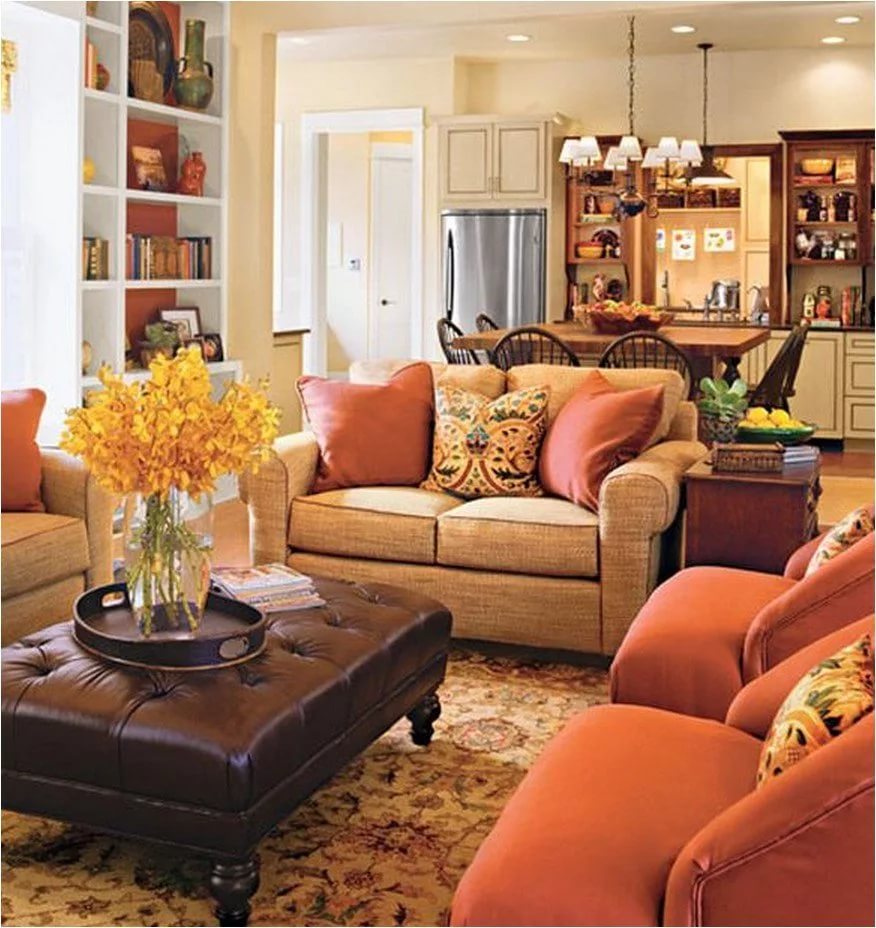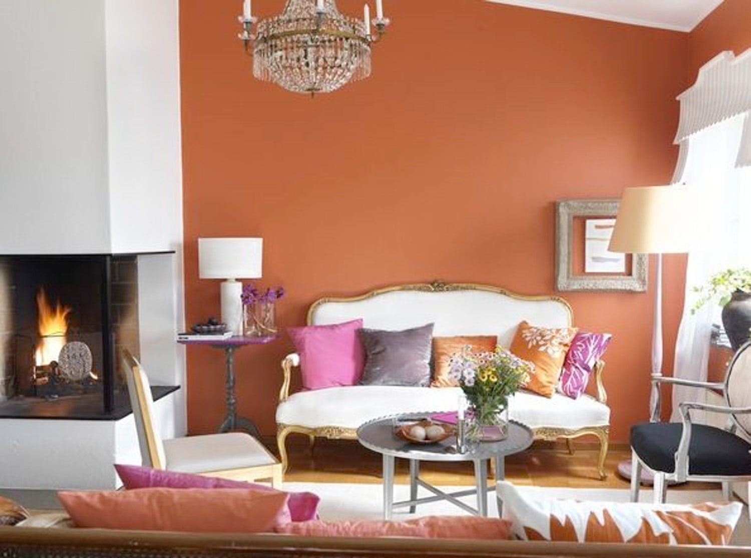 Cores apropriadas de design de interiores desempenham um papel no desenvolvimento de uma decoração harmoniosa de salas e na criação de um ambiente agradável.A cor laranja da terracota deixa o moderno design de interiores ensolarado, alegre e aconchegante, dando muitas possibilidades para introduzir tonalidades de cores apropriadas no interior, que enriquecem a decoração da sala.