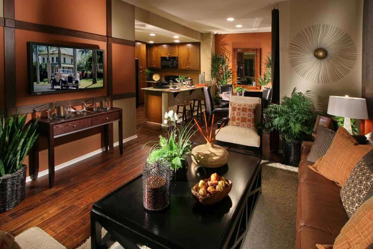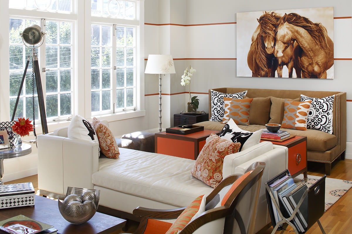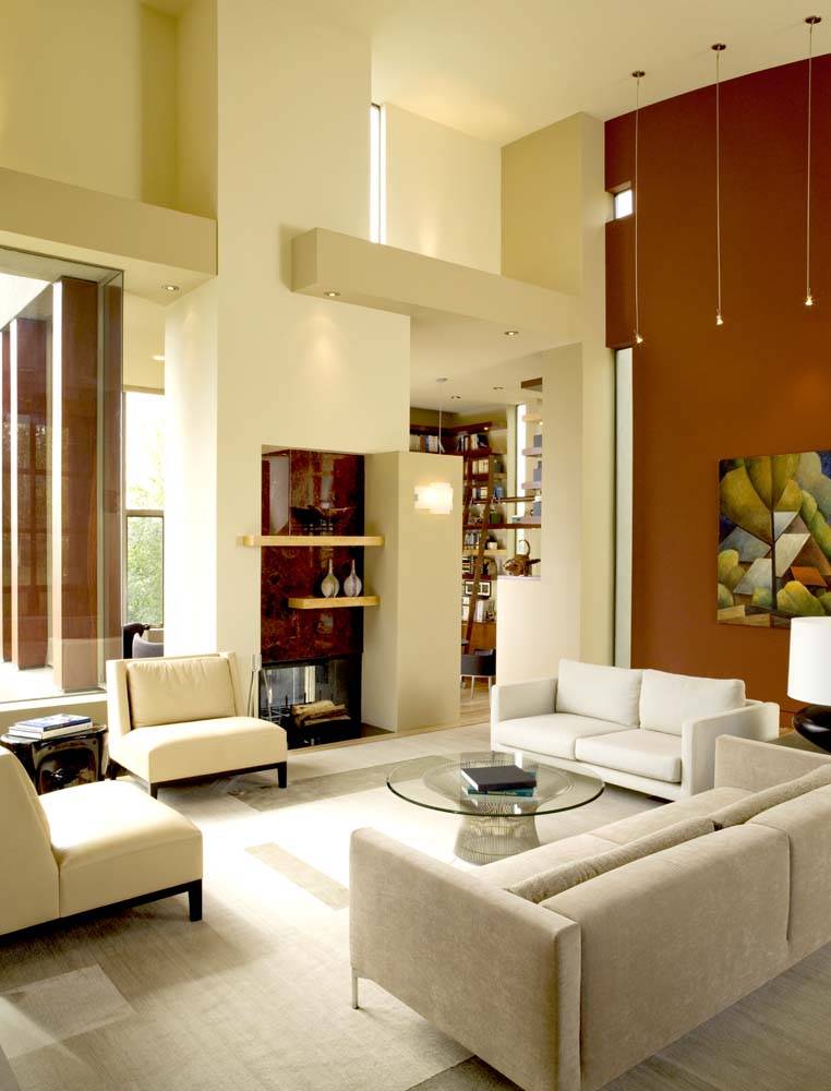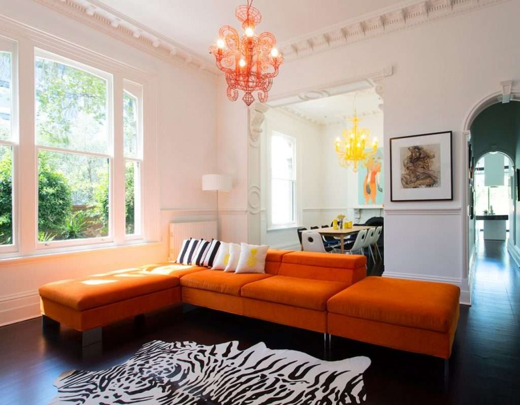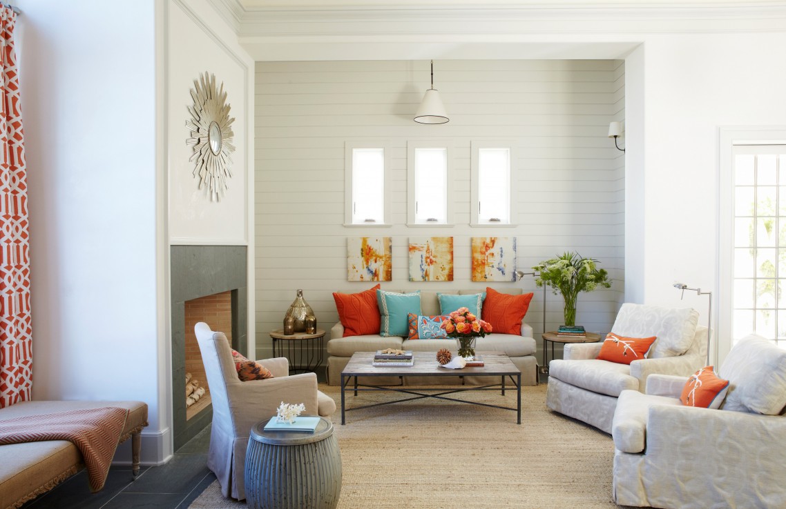 Cores apropriadas de design de interiores desempenham um papel no desenvolvimento de uma decoração harmoniosa de salas e na criação de um ambiente agradável.A cor laranja da terracota deixa o moderno design de interiores ensolarado, alegre e aconchegante, dando muitas possibilidades para introduzir tonalidades de cores apropriadas no interior, que enriquecem a decoração da sala.
