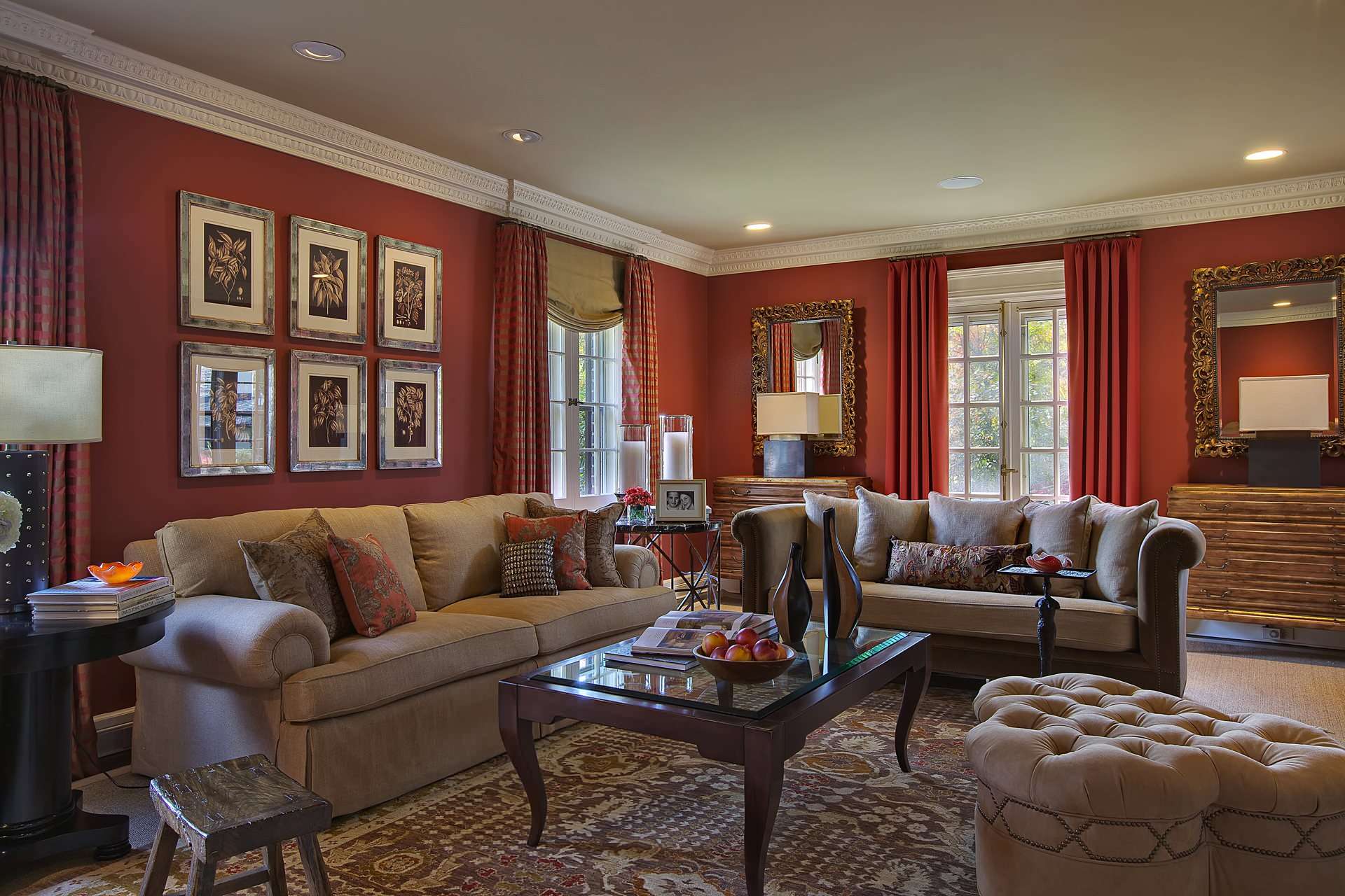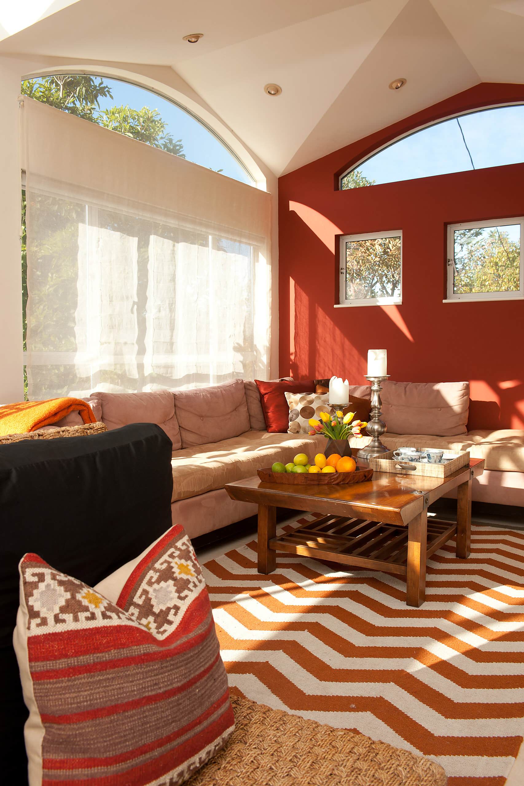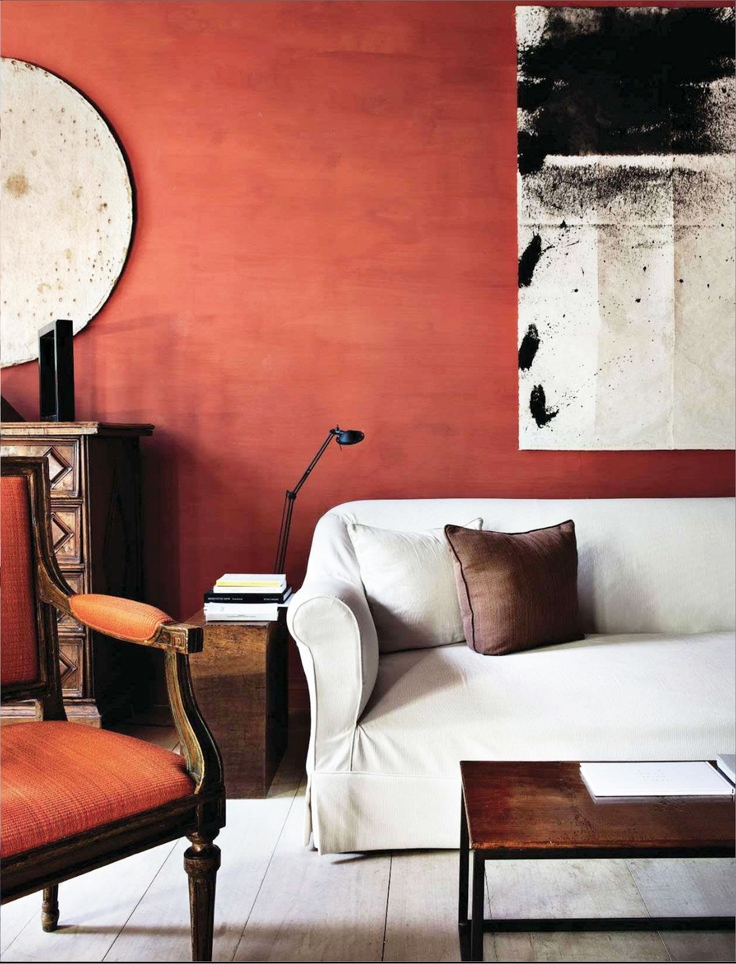 Para um efeito mais confiável, considere adicionar um revestimento decorativo de ocre vermelho, como o veneziano gesso. Além disso, este tipo de revestimento de parede dá a impressão de profundidade e "luxo". Você vai querer usar as possibilidades de terracota com toda a sua sutileza. Concentre-se em adicionar esta cor em estofos macios sofás e poltronas adicionar esta sombra para tapeçarias de parede e arte artística. Decore com móveis de madeira escura ou ferro forjado.