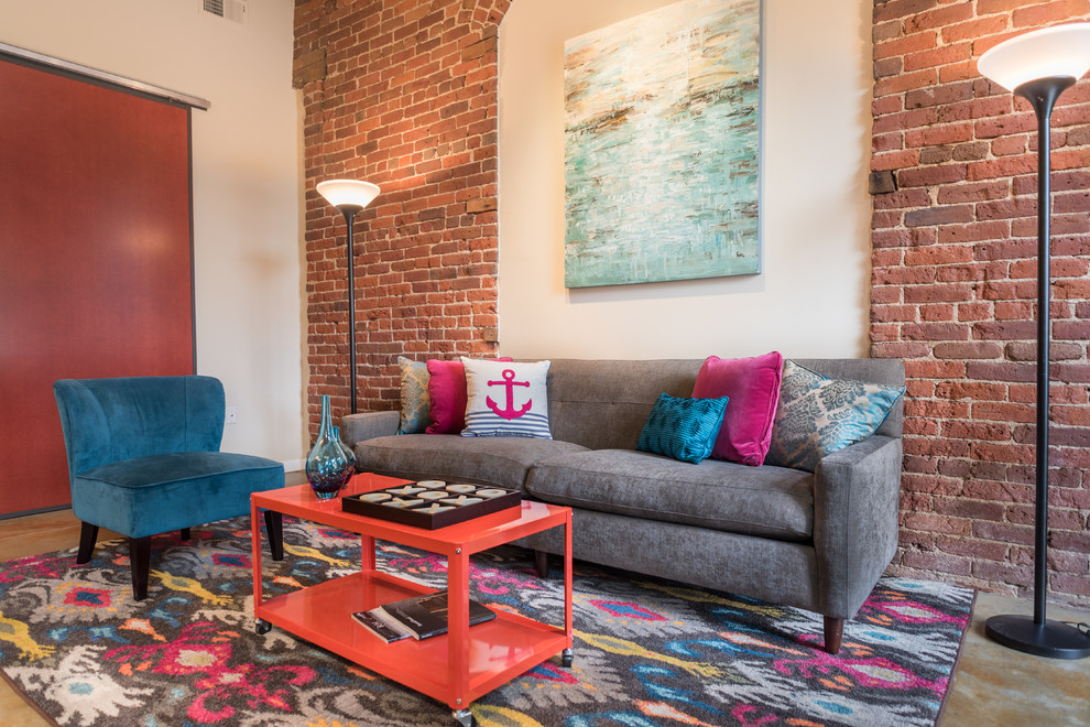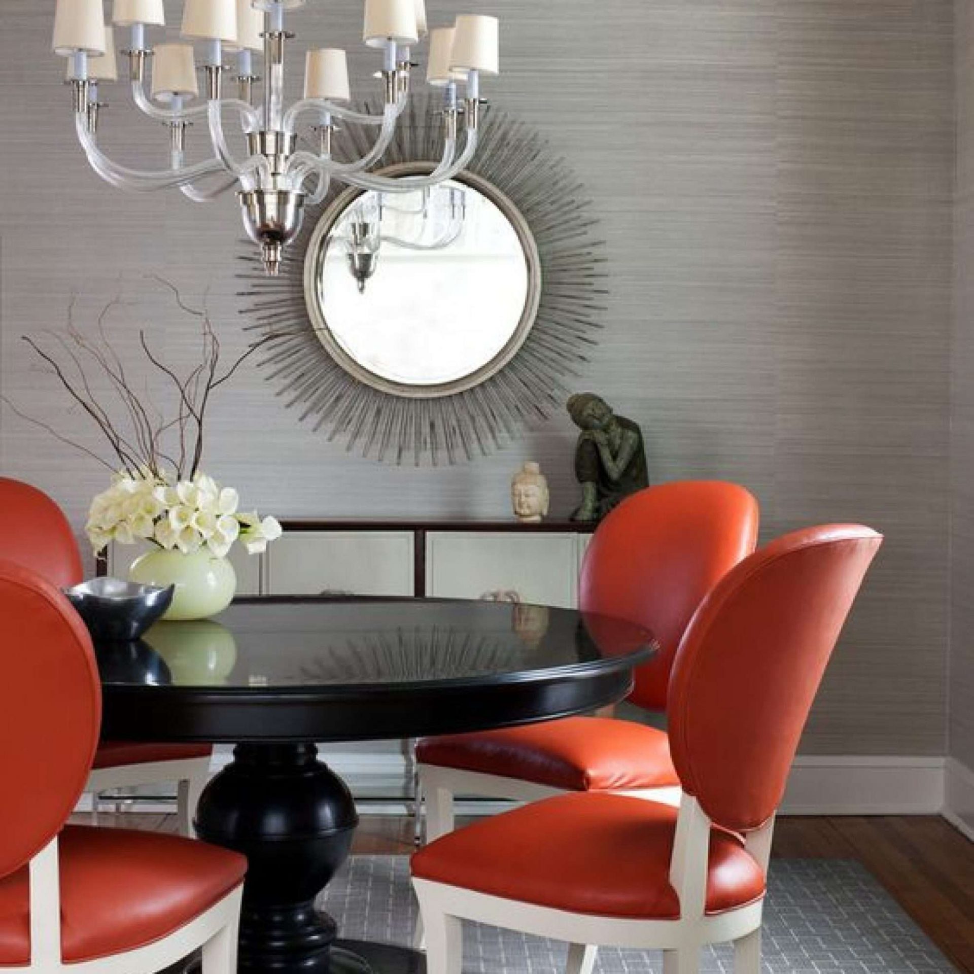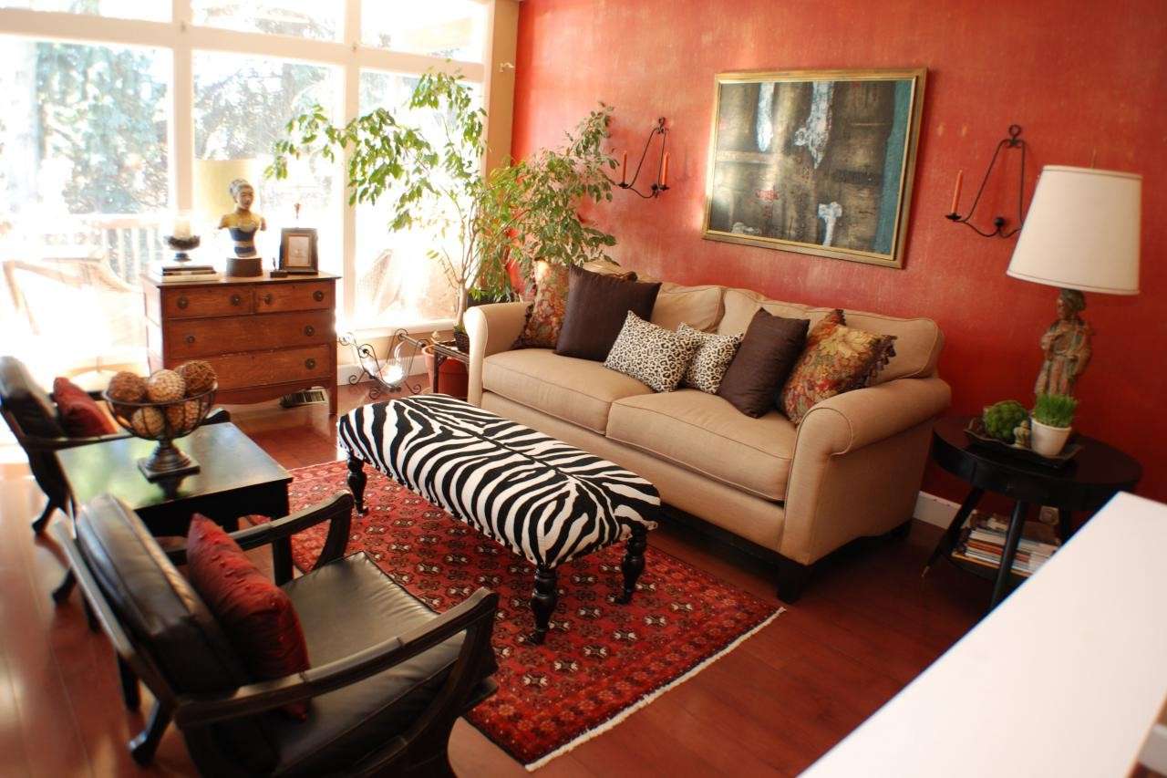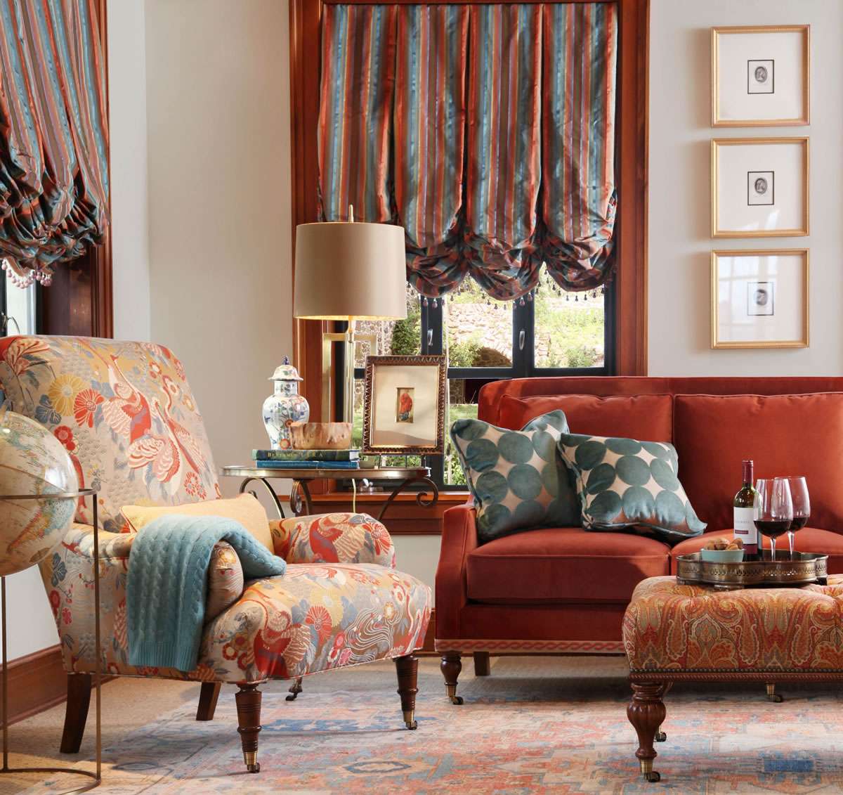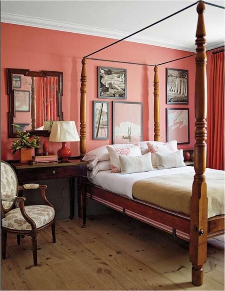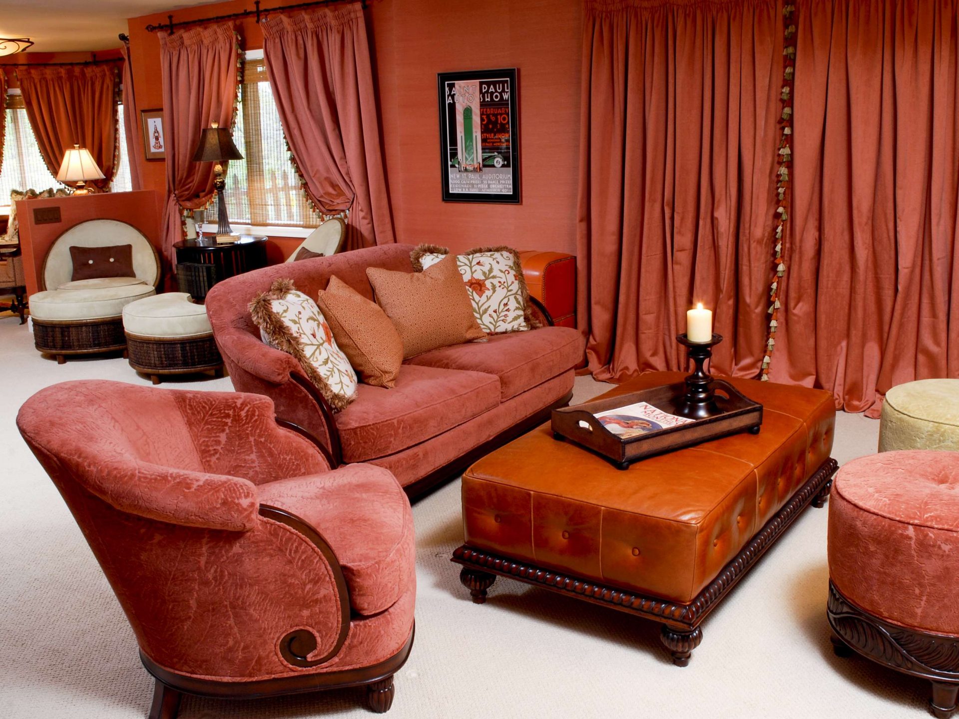 Se você não estiver pronto para mudar a cor das paredes, selecione pinturas artísticas em tons de terracota cor de rosa e vermelho.Ou acentue uma peça de mobília - por exemplo, uma cadeira feita em um tom laranja enferrujado.