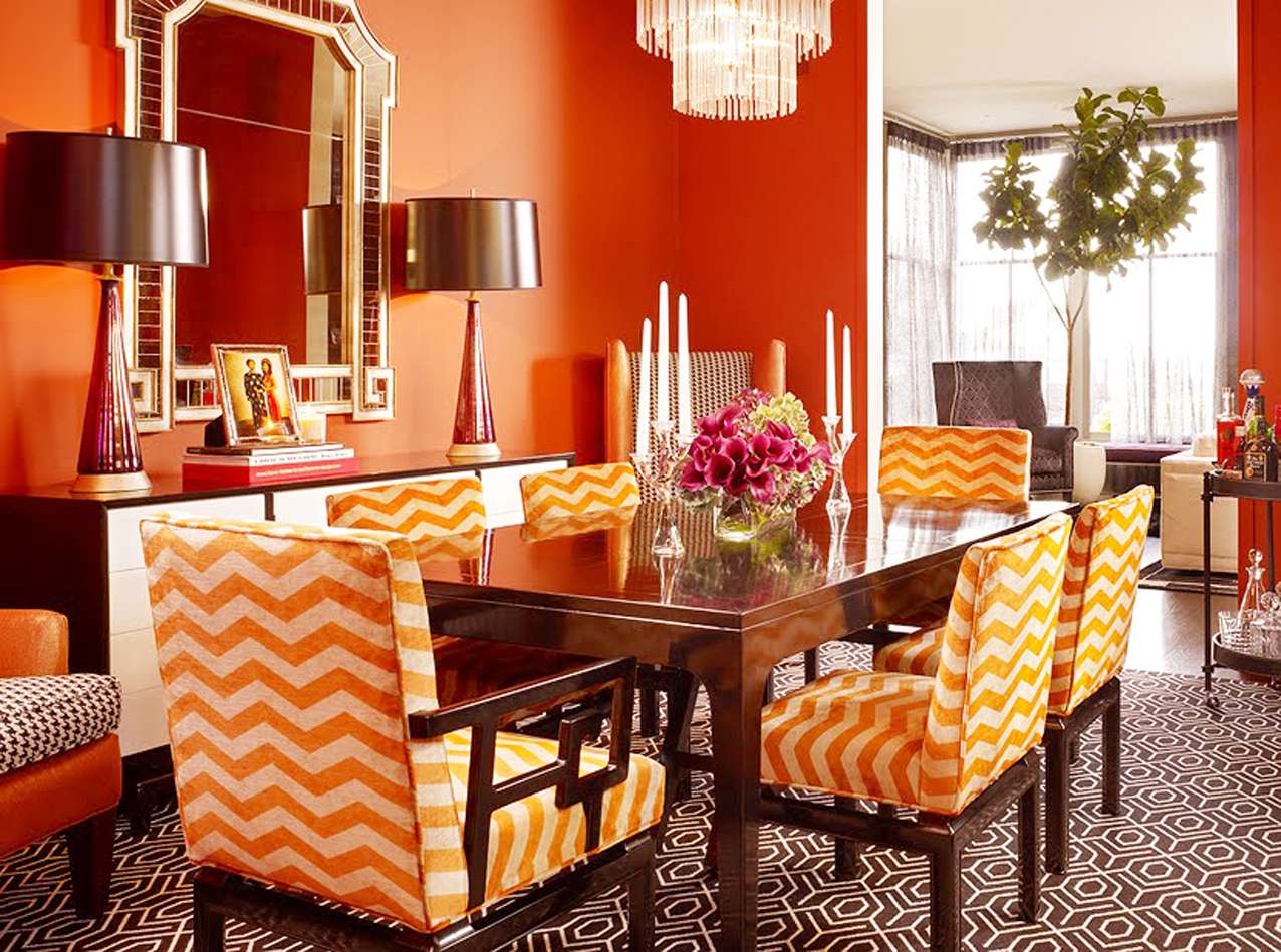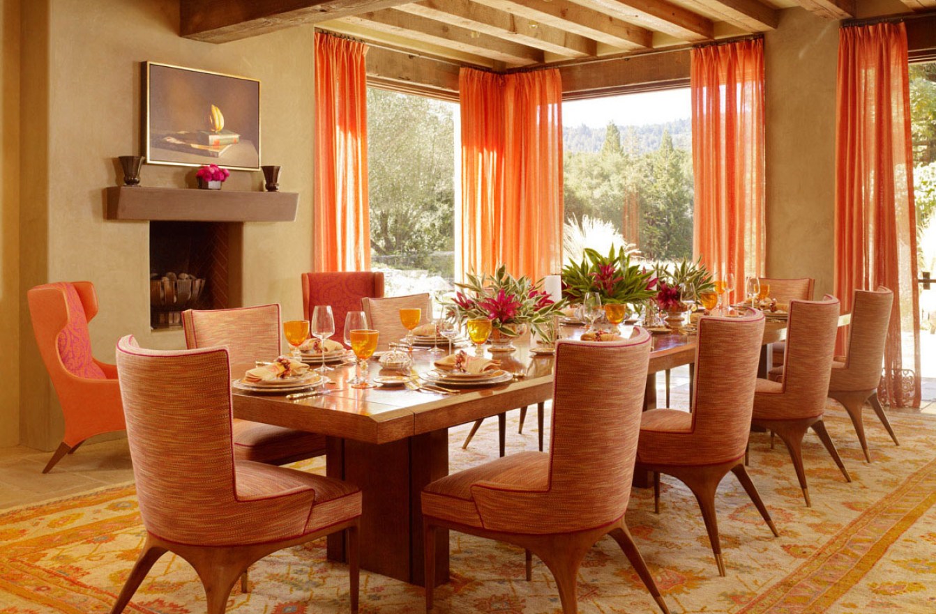 Para cozinhas e sala de jantar são bem adequados tons de tijolos. Mas qualquer sombra sempre exala muito sol quente, quando seus raios refratam através desta cor nas janelas.