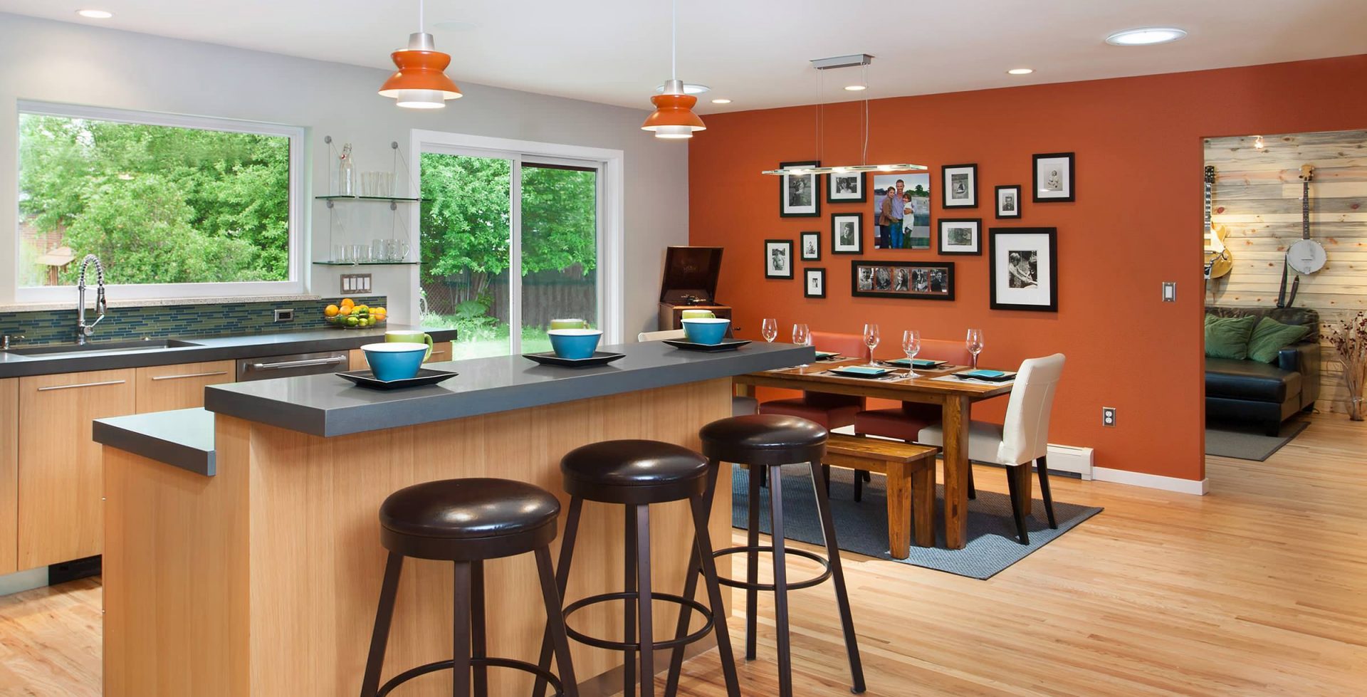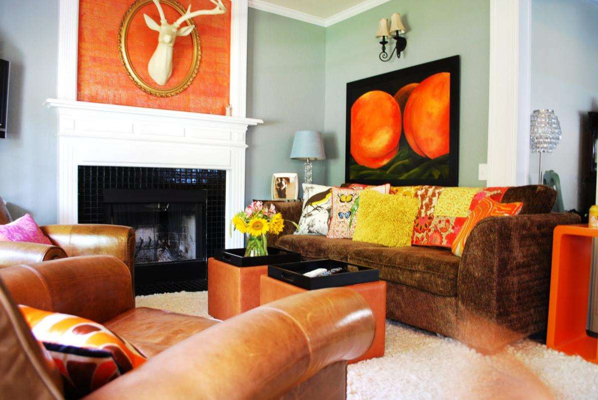 Esquemas de cores contrastantes com tons laranja e azul, todos marrons ou pretos criam um design de interiores original e arrojado que faz uma declaração. As cores amarelo escuro, marrom avermelhado e laranja das folhas de outono combinadas com as cores azul claro, turquesa e verde adicionam um visual fresco e jovem às idéias modernas de design de interiores.