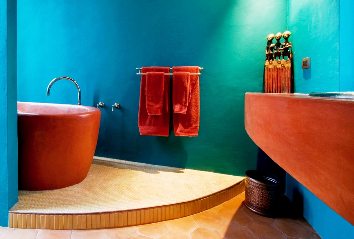 Utilizada em móveis e objetos, assim como em tecidos leves, essa cor ao mesmo tempo agrega elegância e aconchego. O tom laranja da terracota dá uma atmosfera amigável quando usado em salas de jantar que parecem casas aconchegantes na costa do Mediterrâneo.