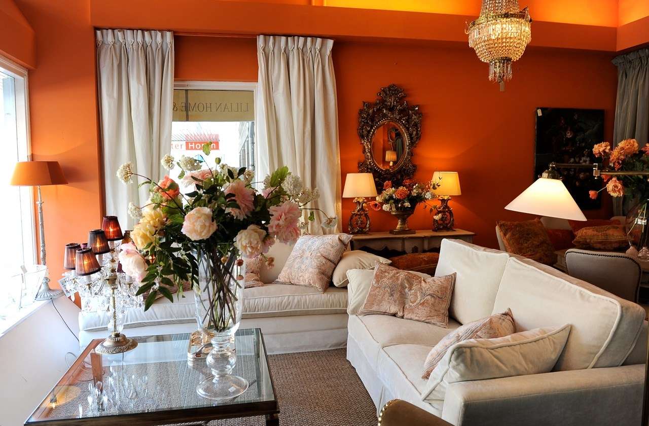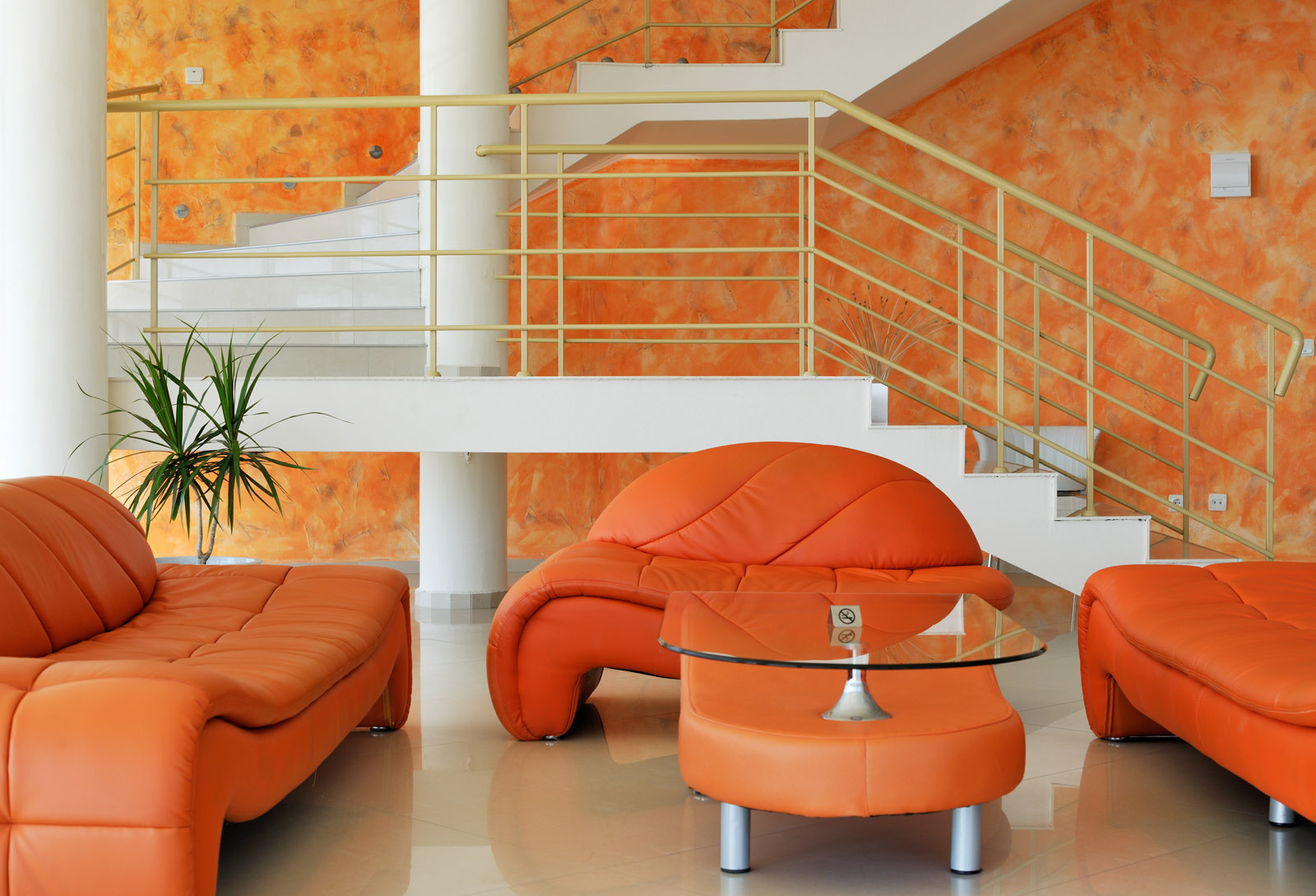 Cores laranja de terracota pode ser brilhante, trazendo tons ricos para design de interiores moderno com acentos decorativos arrojados. Tons suaves de laranja criam esquemas de cores mais silenciosos e mais suaves que combinam bem com decorações em cinza claro, branco, bege ou branco leitoso.