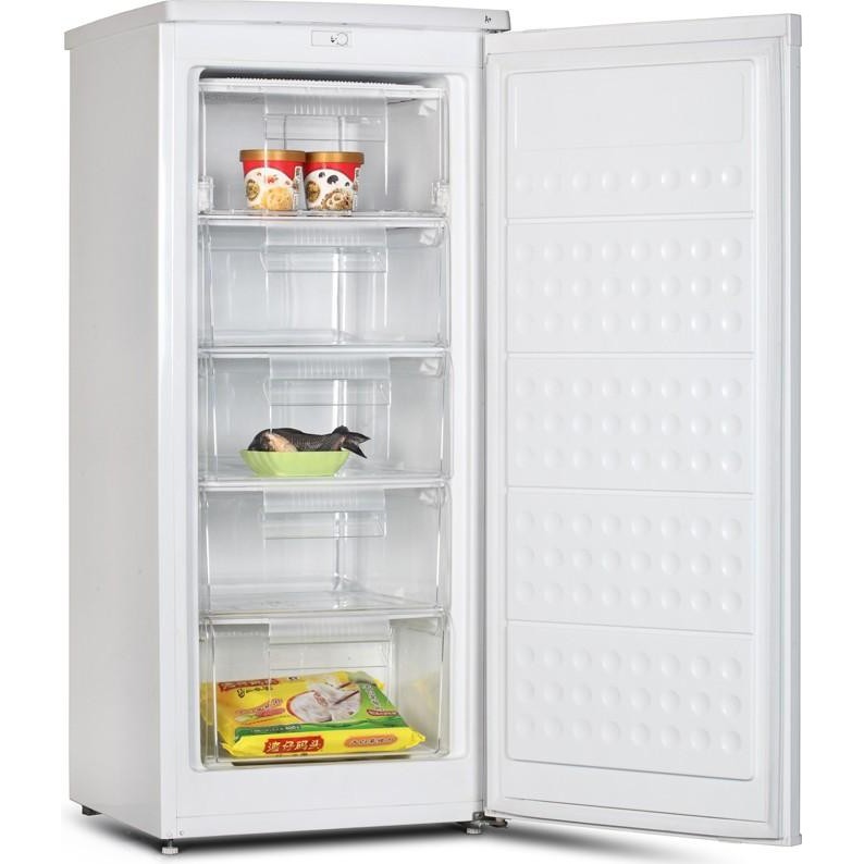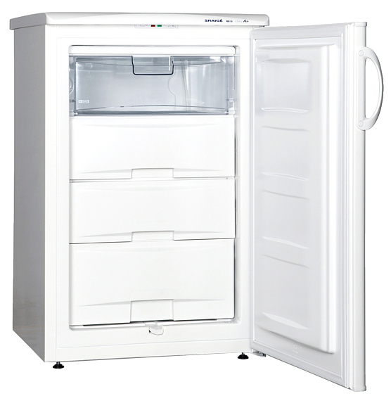 Congelador compacto, pelo seu tamanho é bastante espaçoso - 85 litros, o que é suficiente para toda a família. Ela tem quatro compartimentos: um com uma tampa transparente dobrável e três gavetas opacas. Funciona muito silenciosamente, sendo econômico no consumo de energia.