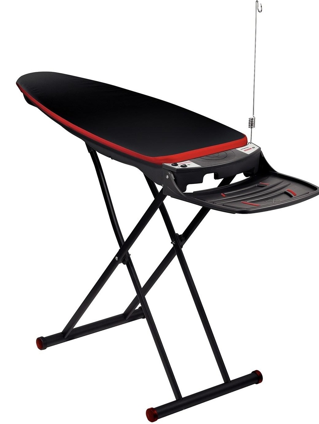 O modelo é feito em dois tons - antracite e vermelho. Adapta-se perfeitamente a qualquer ferro, concebido para engomar rápido e muito delicado. Existe uma função de soprar ar, que permite fixar o produto e suavizar todas as dobras em questão de minutos. Graças ao aquecimento embutido, você pode secar roupas.