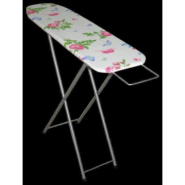 Tábua de passar roupa leve e prática feita de termoplástico com cobertura de algodão. Pode ser ajustado conforme desejado, aumentando o máximo em 96 centímetros. O modelo é equipado com um suporte sob os insertos de silicone de ferro e antiaderente.