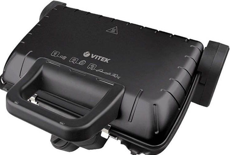 A grelha Vitek é um dispositivo de aperto fechado. Seus pratos são feitos de alumínio, então eles aquecem rapidamente e uniformemente.. O espaço de trabalho é ajustável em altura, permitindo que você cozinhe pratos de qualquer espessura, seja carne ou peixe, legumes ou sanduíches, e alta potência irá garantir uma boa torrefação.