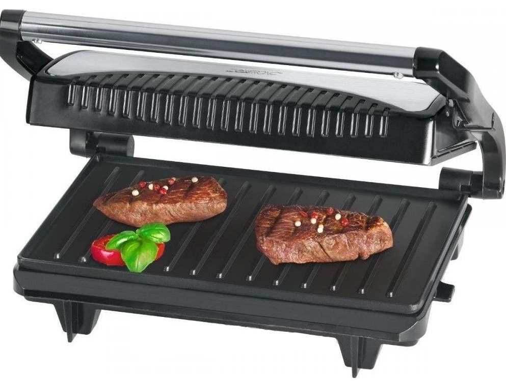 Esta grelha elétrica permite cozinhar pratos de forma rápida e eficiente. O aquecimento uniforme das placas superior e inferior garante uma cozedura rápida e uniforme. É necessário implantá-los horizontalmente e você pode dobrar a área utilizável, usando o dispositivo em uma forma horizontal.
